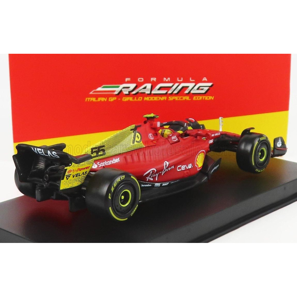 BURAGO FERRARI F1-75 SCUDERIA FERRARI N 55 4. MONZA GP OLASZORSZÁG 2022 CARLOS SAINZ - SISAKKAL ÉS MŰANYAG VITRINnel - EXKLUZÍV