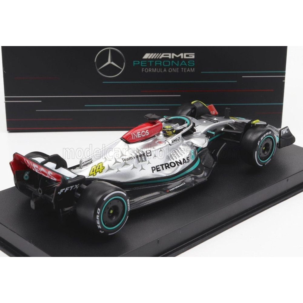 BURAGO MERCEDES GP F1 W13E CSAPAT MERCEDES-AMG PETRONAS F1 N 44 2022-ES SZEZON LEWIS HAMILTON - SISAKKAL ÉS MŰANYAG VITRINnel -