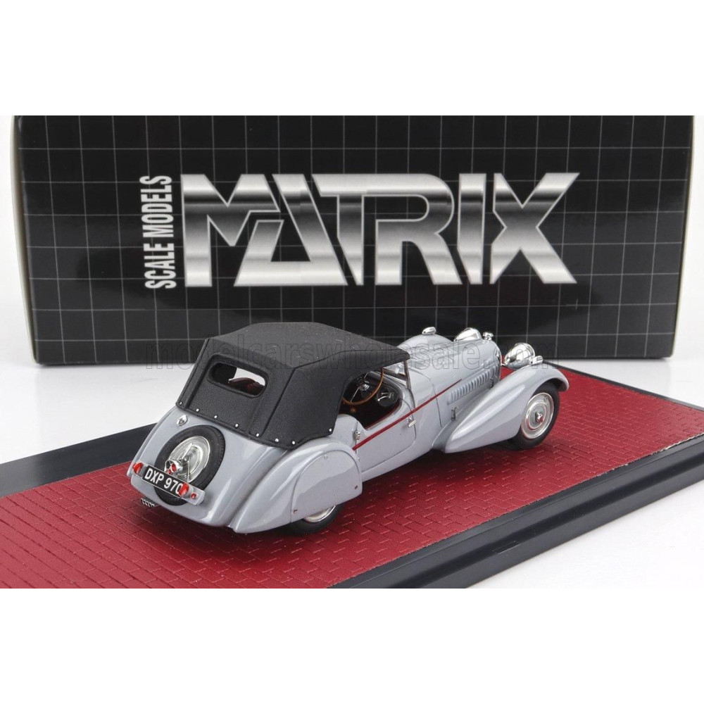 MATRIX MÉRETARÁNYOS BUGATTI T57SC ROADSTER VANDEN PLAS ZÁRVA 1938 - SZÜRKE FEKETE 1/43
