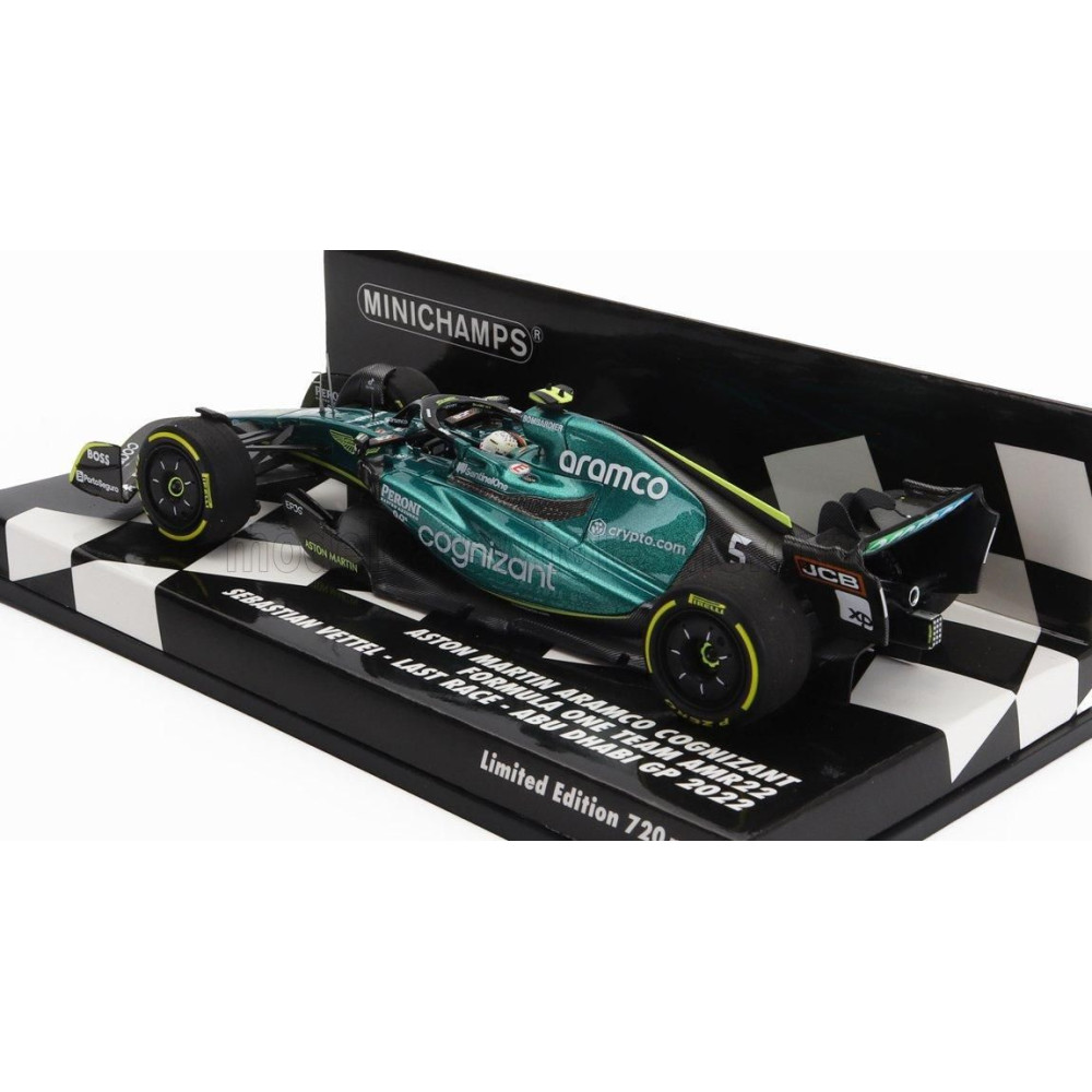 MINICHAMPS ASTON MARTIN F1 AMR22 TEAM ARAMCO COGNIZART N 5 ABU DHABI GP UTOLSÓ FUTAMA 2022 SEBASTIAN VETTEL - GREEN BLACK 1/43