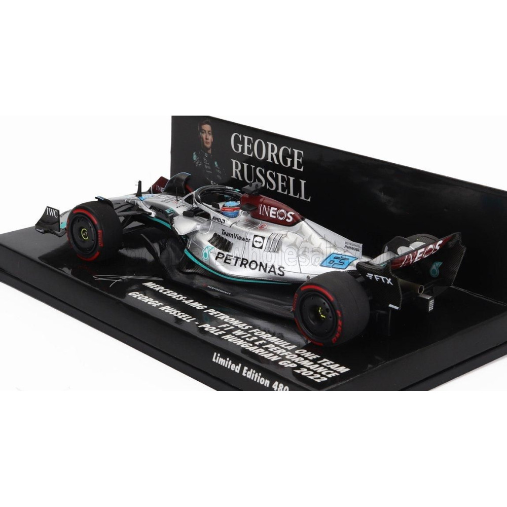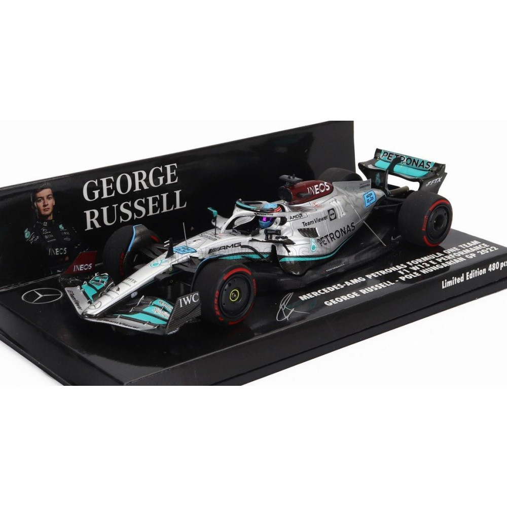 MINICHAMPS MERCEDES GP F1 W13E CSAPAT MERCEDES-AMG PETRONAS F1 N 63 POLE POZÍCIÓ MAGYAR GP 2022 GEORGE RUSSELL - EZÜSTZÖLD