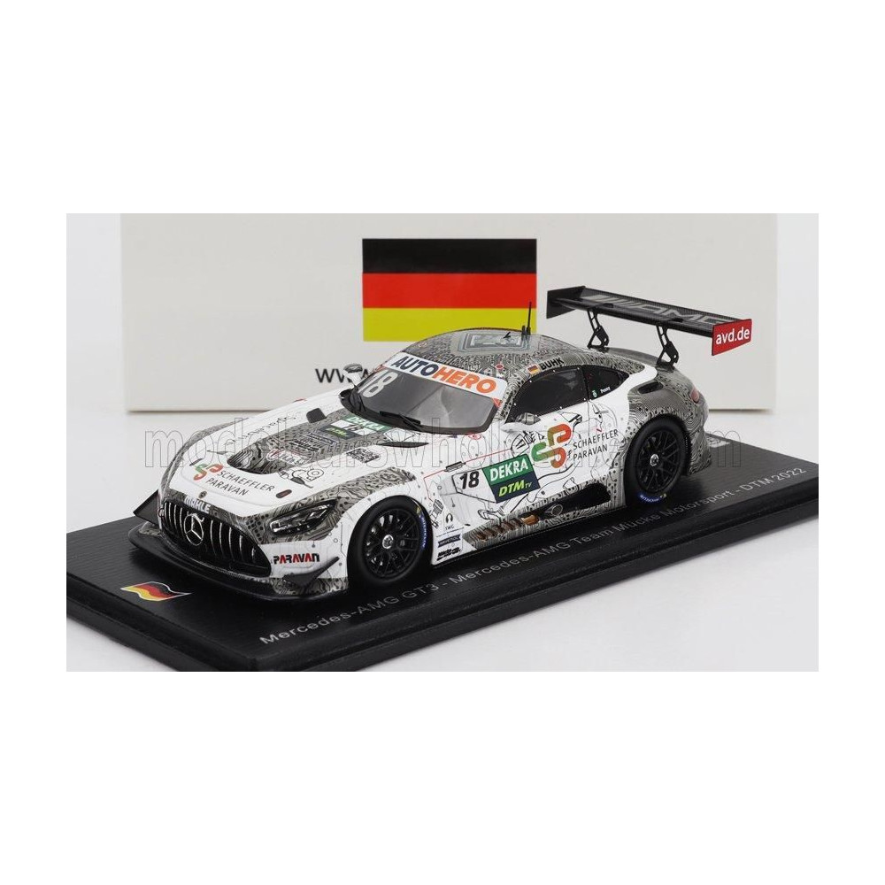 SPARK MODELL MERCEDES BENZ AMG GT3 EVO TEAM MUCKE MOTORSPORT N 18 DTM SZEZON 2022 MAXIMILIAN BUHK - FEHÉR SZÜRKE 1/43