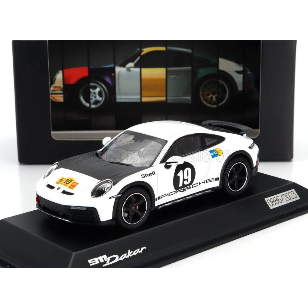 SPARK MODELL PORSCHE 911 992 N 19 DAKAR RALLY (FESTÉS 1971) COUPE 2023 - FEHÉR FEKETE 1/43