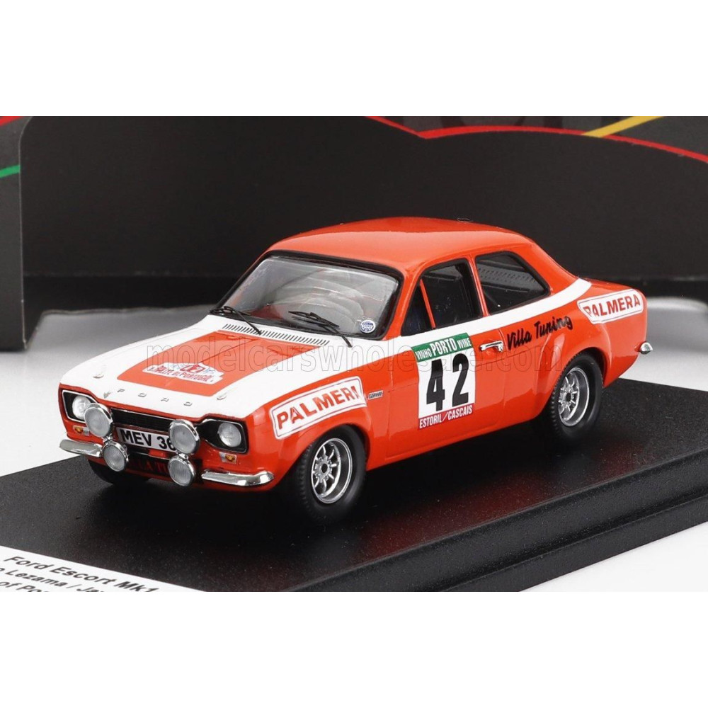 TROFEU FORD ANGLIA ESCORT MKI (éjszakai változat) N 42 RALLY PORTUGAL 1975 F.LEZAMA - J.ARNAIZ - PIROS-FEHÉR 1/43