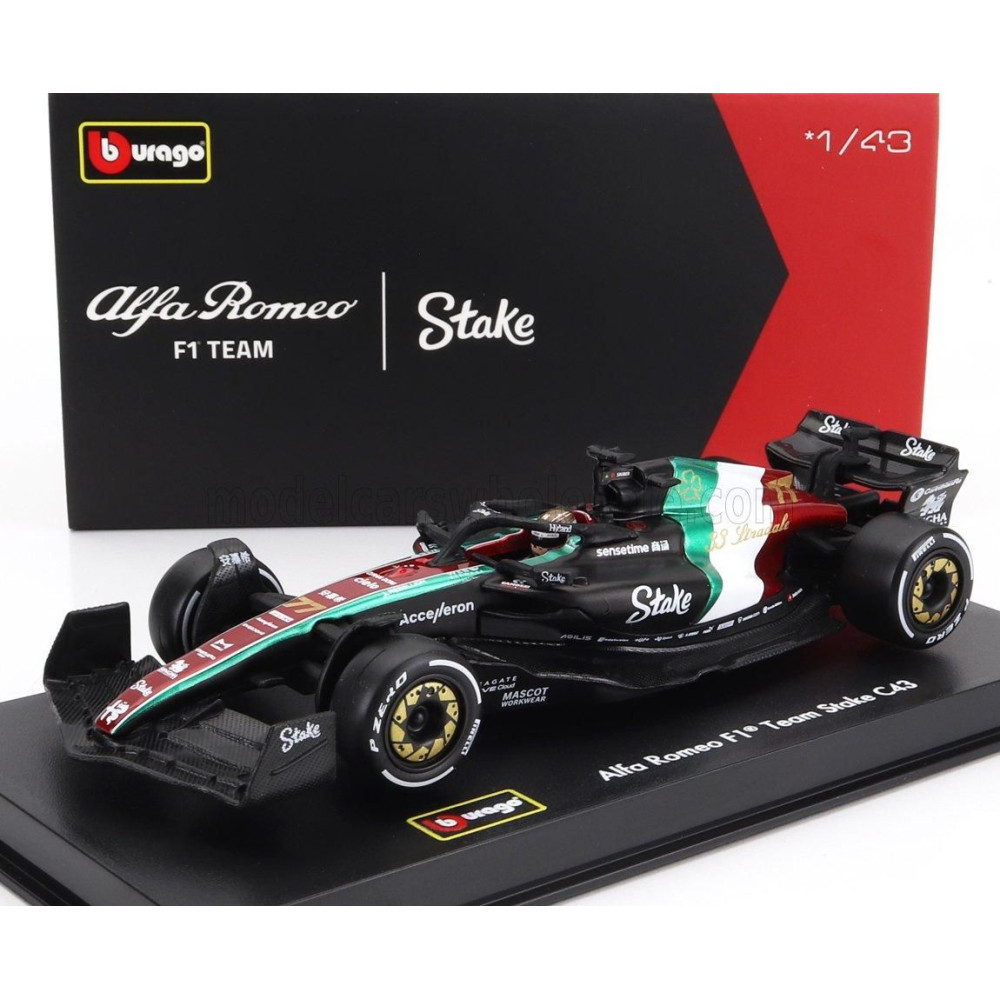 BURAGO ALFA ROMEO F1 C43 CSAPAT STAKE N 77 MONZA OLASZORSZÁG GP 2023 VALTTERI BOTTAS - PILOTT ÉS BEMUTATÓ - FEKETE PIROS FEHÉR Z