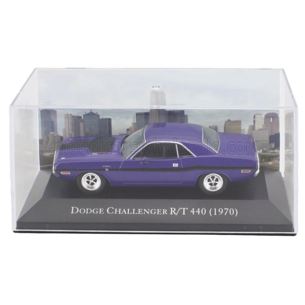 EDICOLA DODGE CHALLENGER R/T 440 COUPE 1970 - CON VETRINA - VITRINNAL - LILA 1/43