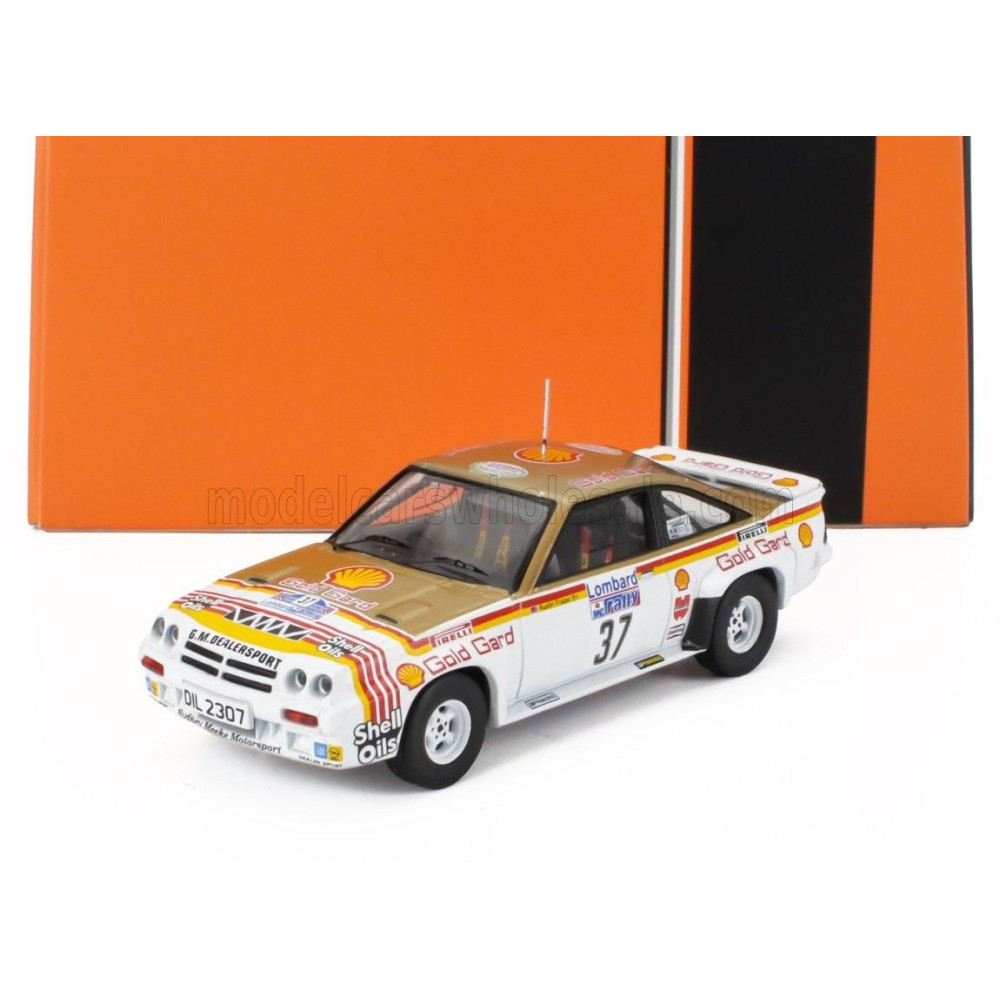 IXO MODELS OPEL MANTA 400 TEAM GM DEALER SPORT N 37 RALLY RAC LOMBARD 1984 BERTIE FISHER - AUSTIN FRAZER - FEHÉR PIROS SÁRGA 1/4