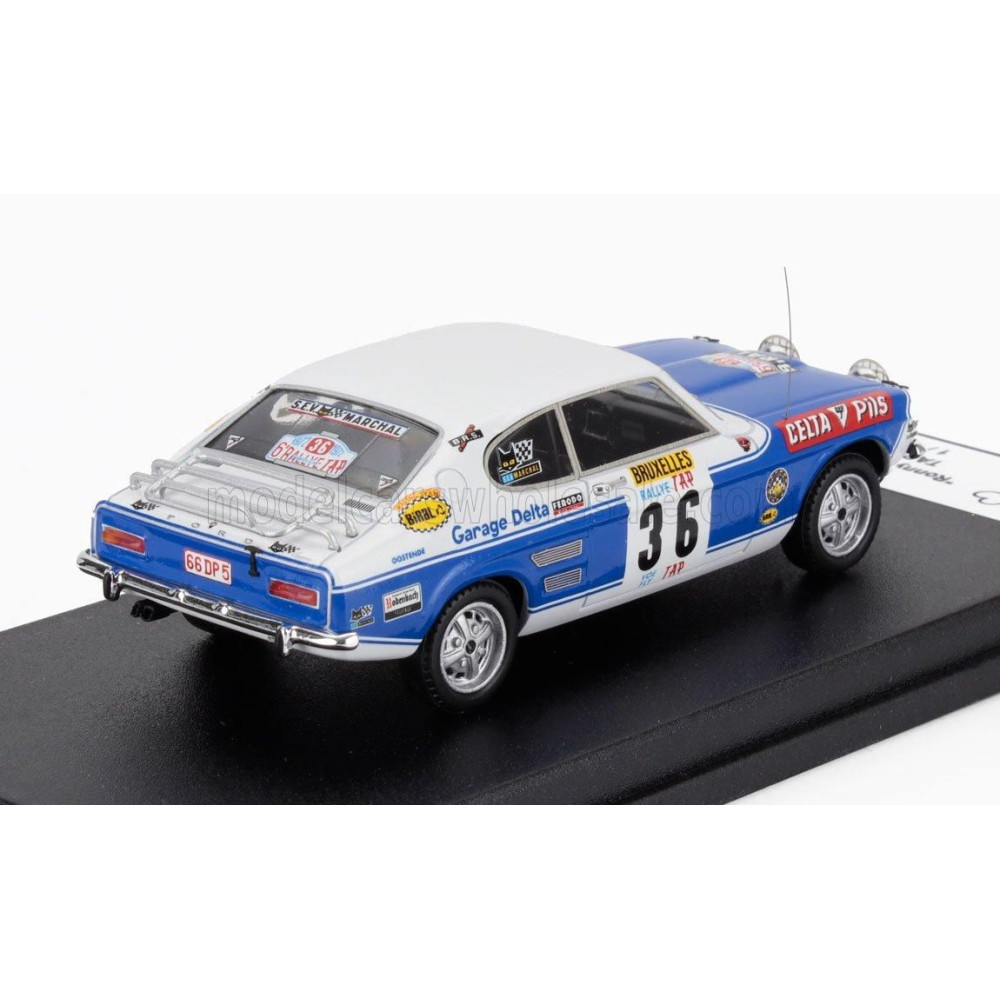 TROPHY FORD ANGLIA CAPRI 2600 (éjszakai változat) N 36 RALLY TAP 1972 RONNY - ADRIAN GIANFALDONE - FEHÉR VILÁGOSKÉK 1/43
