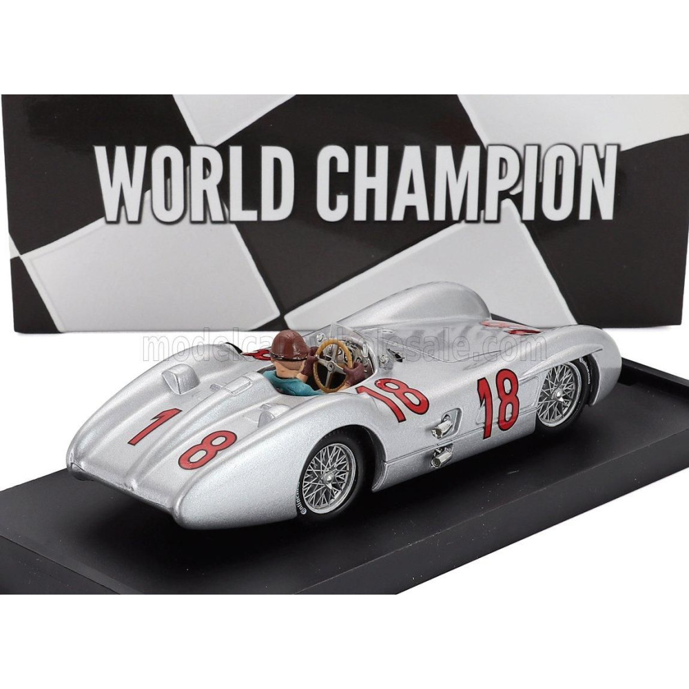 BRUMM MERCEDES BENZ F1 W196C N 18 VILÁGBAJNOK 1954-ES ÉVAD JUAN MANUEL FANGIO - PILÓTA FIGURÁVAL - EZÜST 1/43