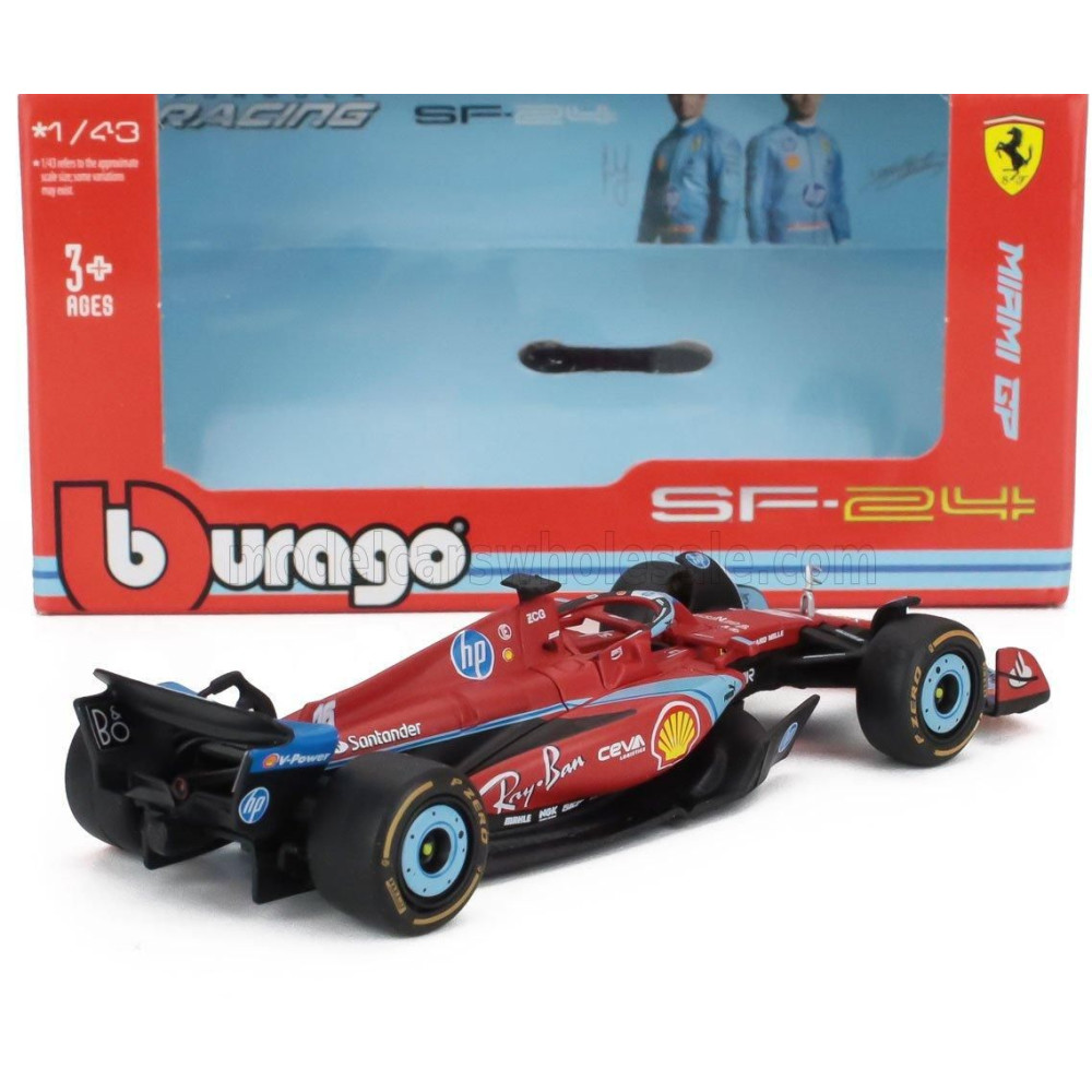 BURAGO FERRARI F1 SF-24 TEAM SCUDERIA FERRARI N 16 3. MIAMI GP 2024 CHARLES LECLERC - PIROS FEKETE VILÁGOSKÉK 1/43