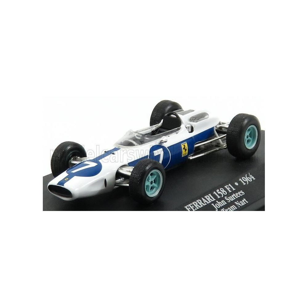 EDICOLA FERRARI F1 158 TEAM NART NORTH AMERICAN RACING N 7 CSAPAT VILÁGBAJNOK 1964-ES ÉVAD JOHN SURTEES - FEHÉR, KÉK 1/43