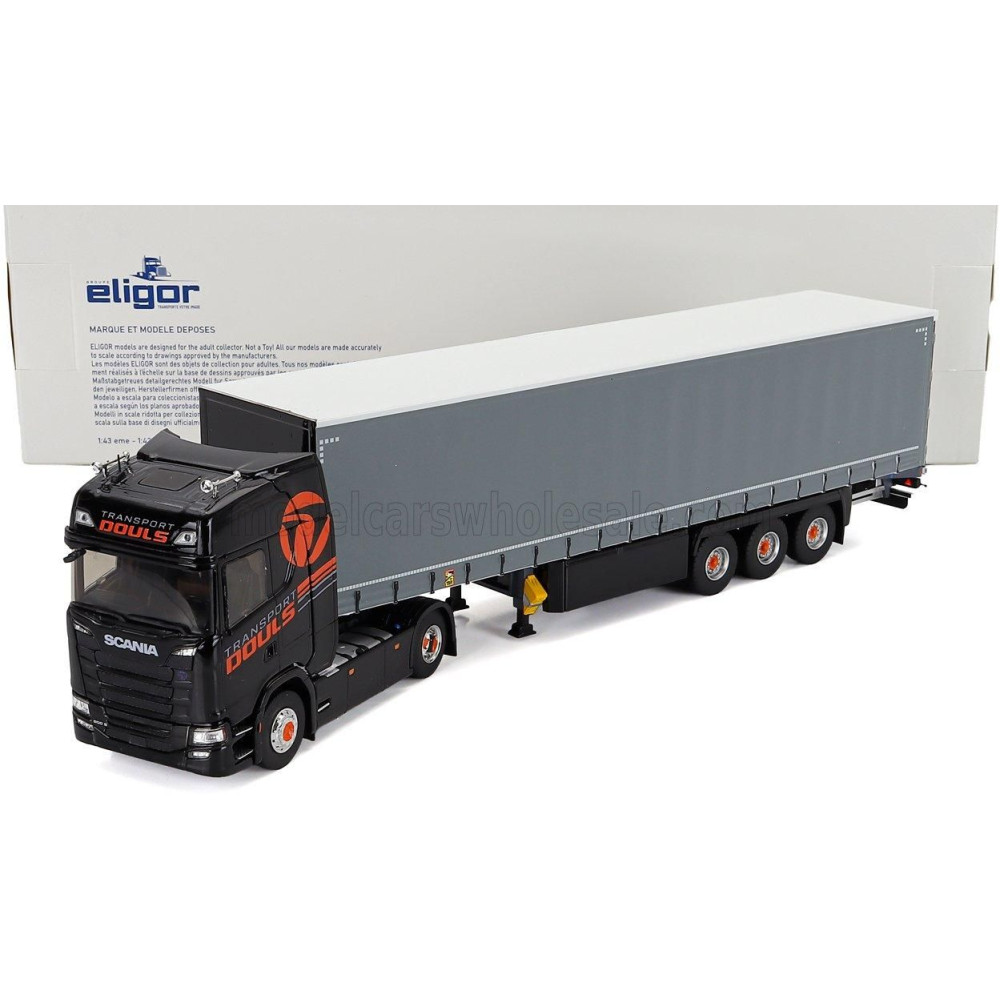 ELIGOR SCANIA S500 TEHERAUTÓ TELONATO DOULS TRANSPORTS 2021 - FEKETE SZÜRKE 1/43