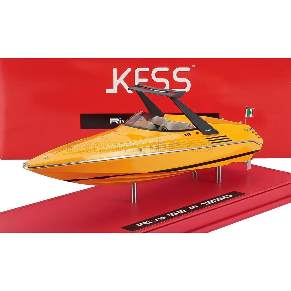 KESS MODELL RIVA MOTOSCAFO 32 FERRARI 1990 2x MOTOR V8 - 780CV - (24cm) - CON VETRINA - VITRINEL - SÁRGA 1/43