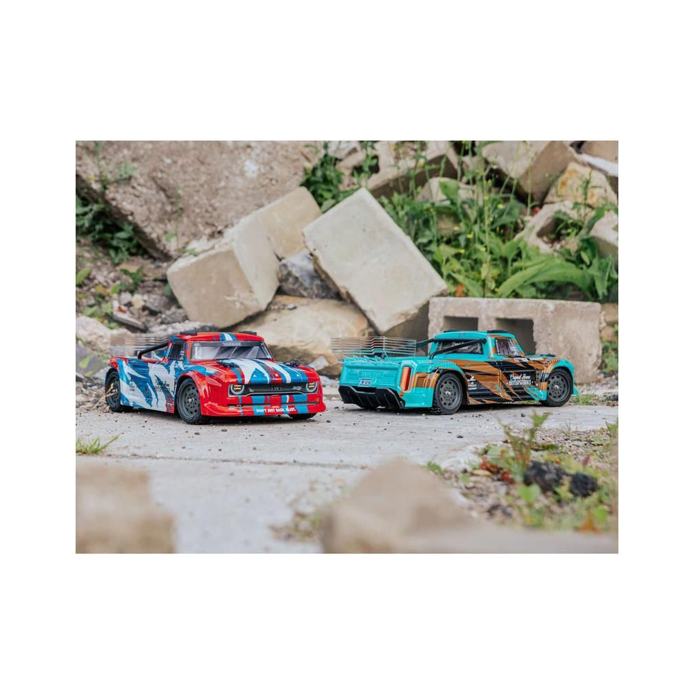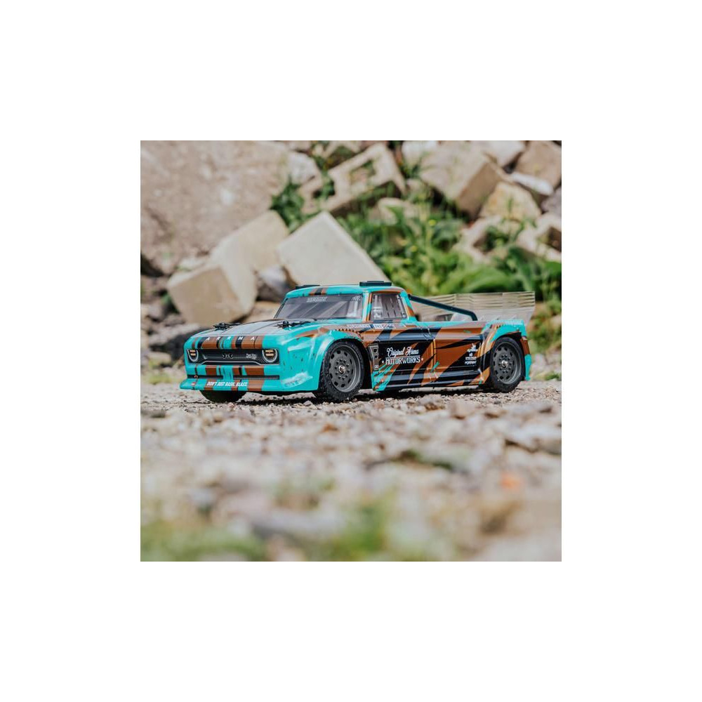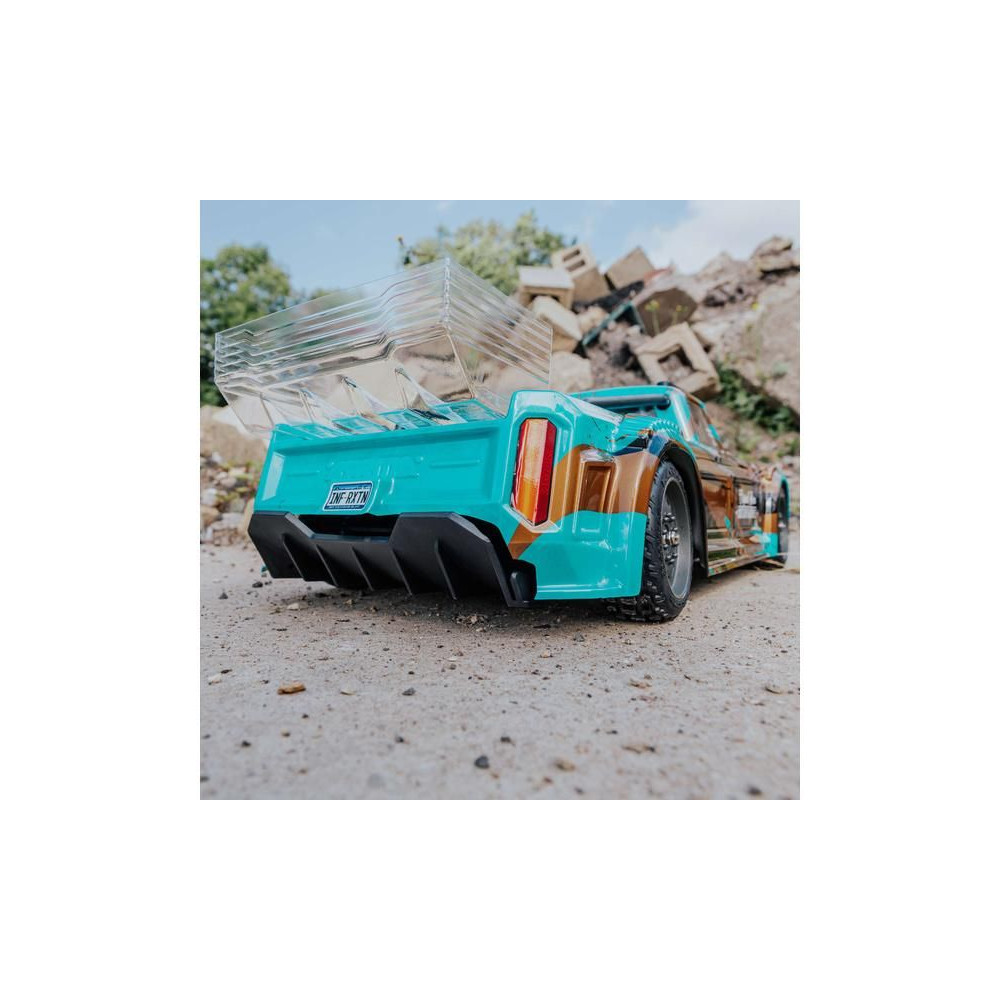 Kész, festett Arrma karosszéria fekete/türkiz színben: Infraction 4X4 3S BLX, részletes...