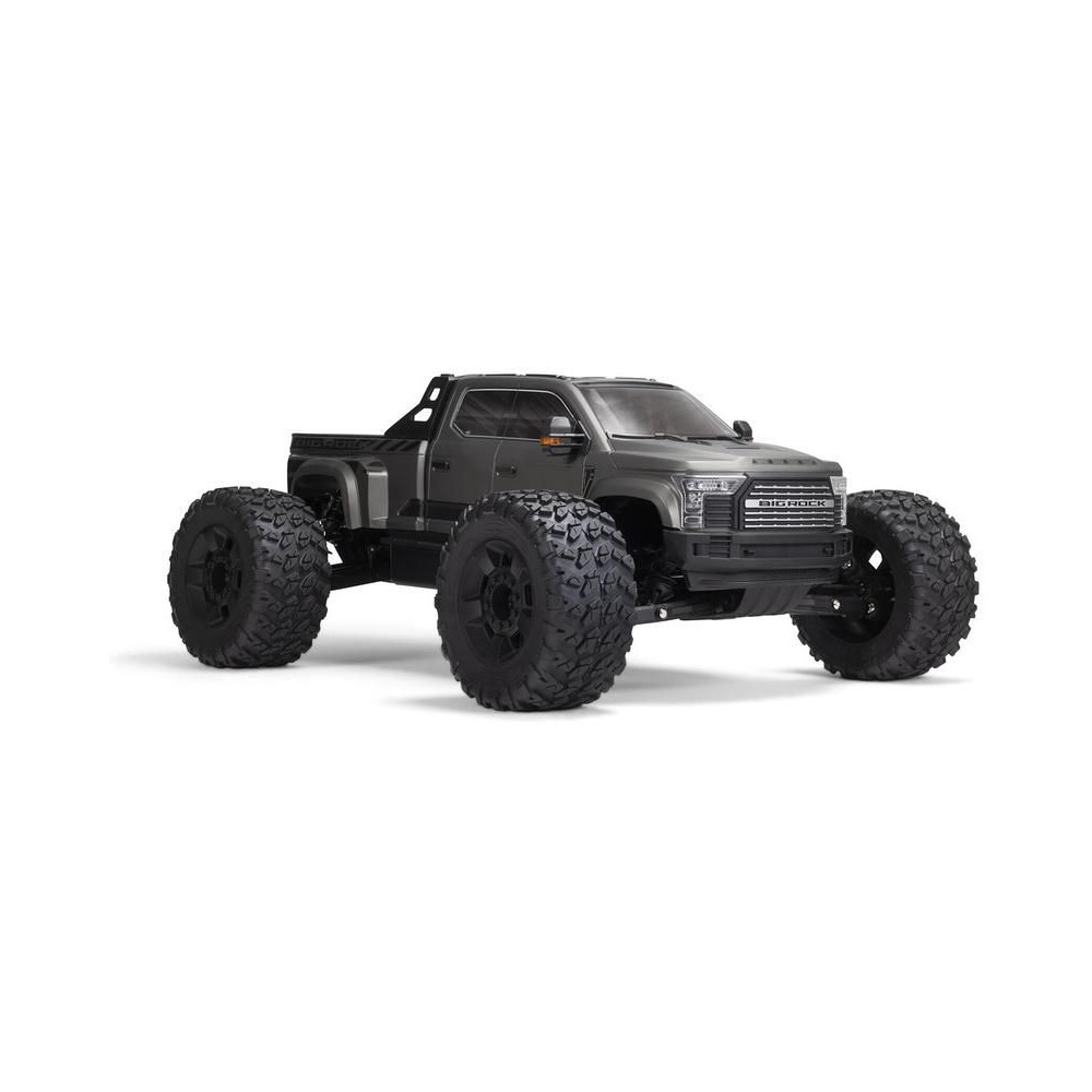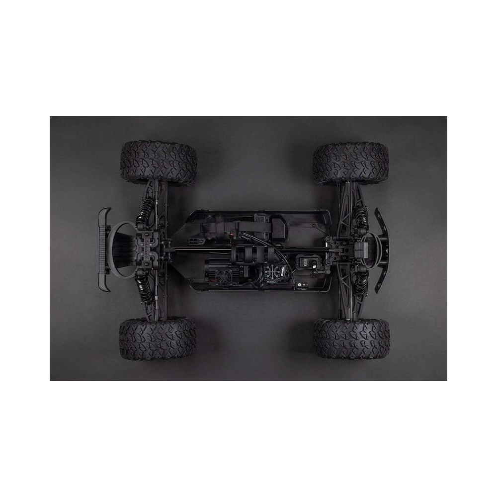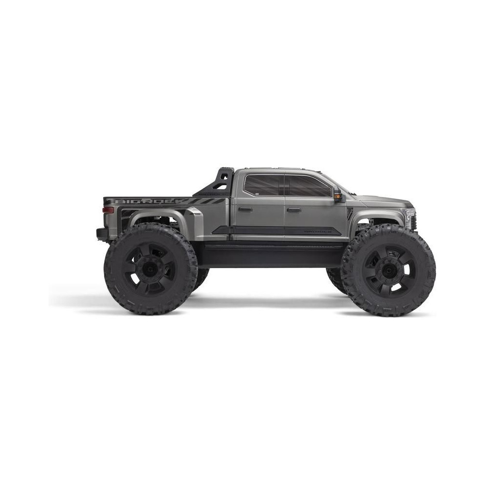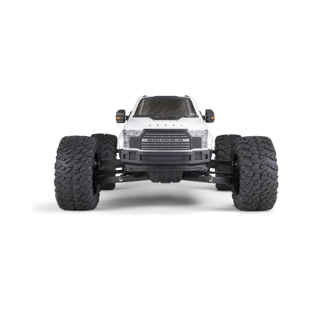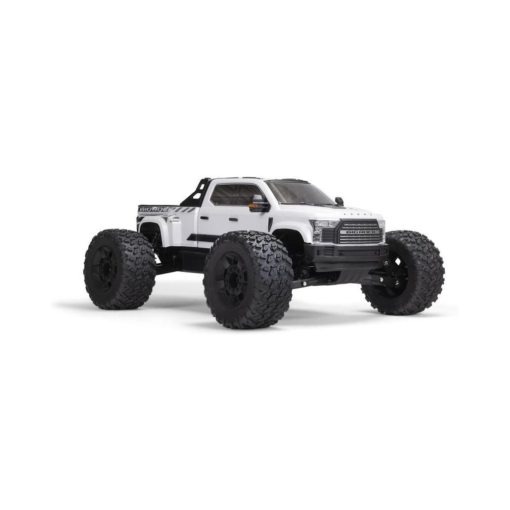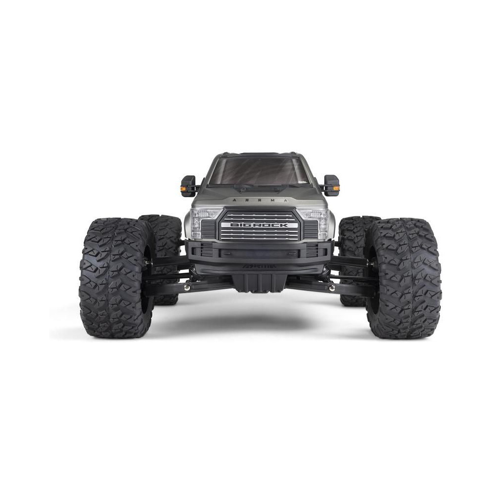 Az 1:7 méretarányú ARRMA® BIG ROCK™ 6S BLX RTR monster truckot kompromisszumok nélküli, gyors és durva vezetésre tervezték. Fekete eloxált alumínium alvázzal rendelkezik, erős kompozit oldalvédőkkel a szennyeződések ellen, középső merevítéssel és spirálrugókkal a maximális tartósság érdekében. A tartós hajtáslánc teljesen fémből készült differenciálművet és sebességváltó fogaskerekeket tartalmaz. Az egész hajtásláncban acél hajtótengelyeket használnak.