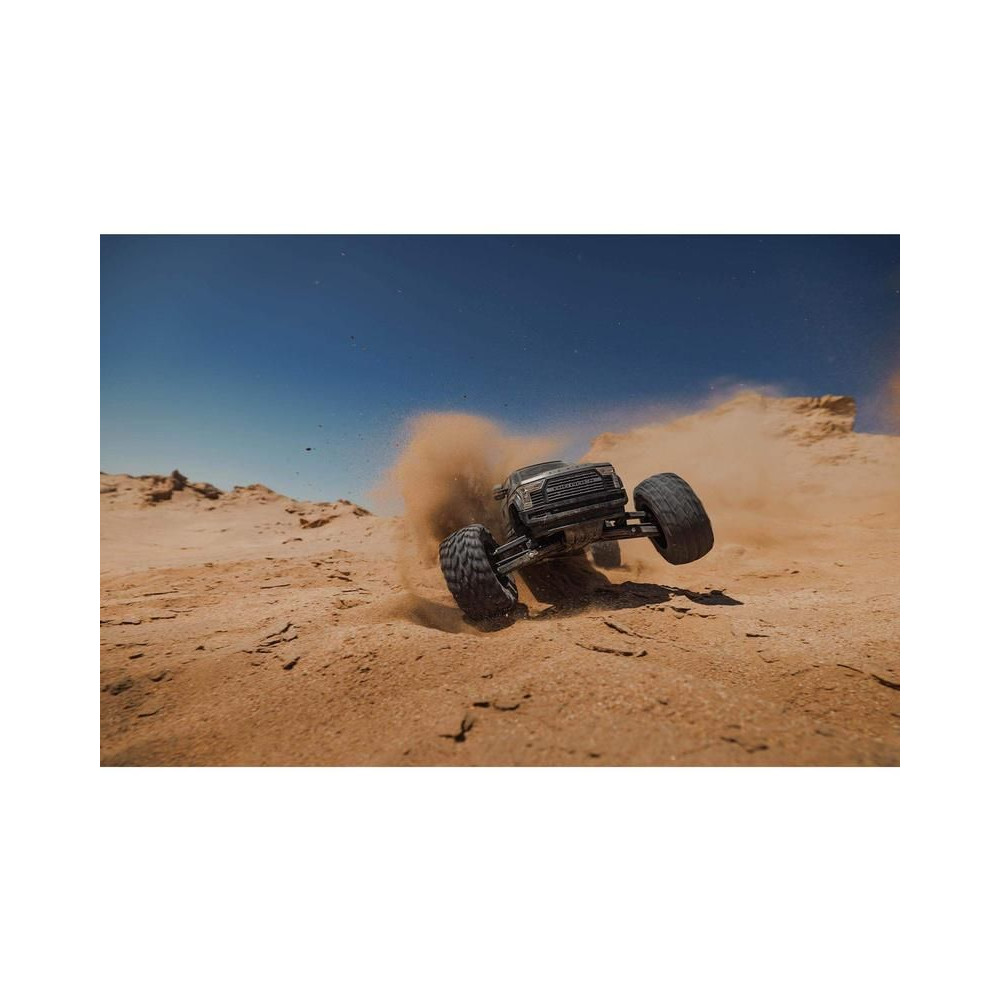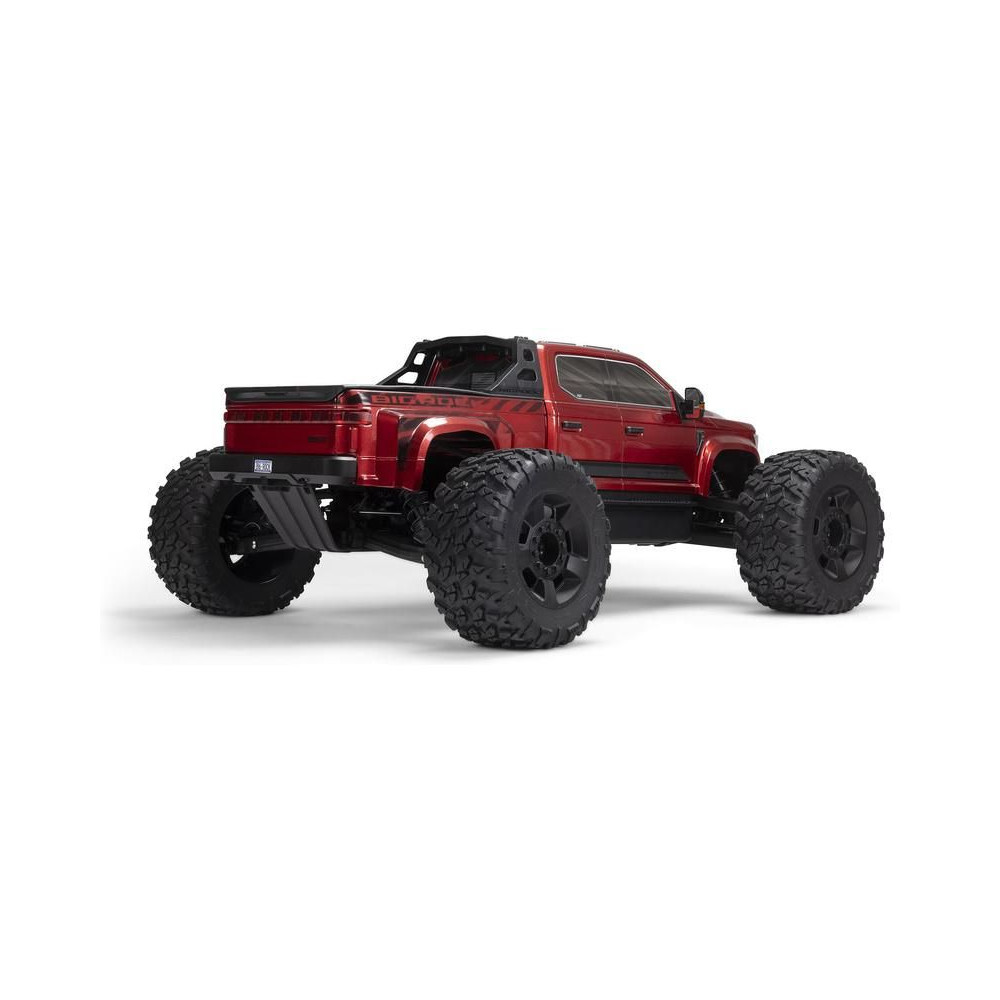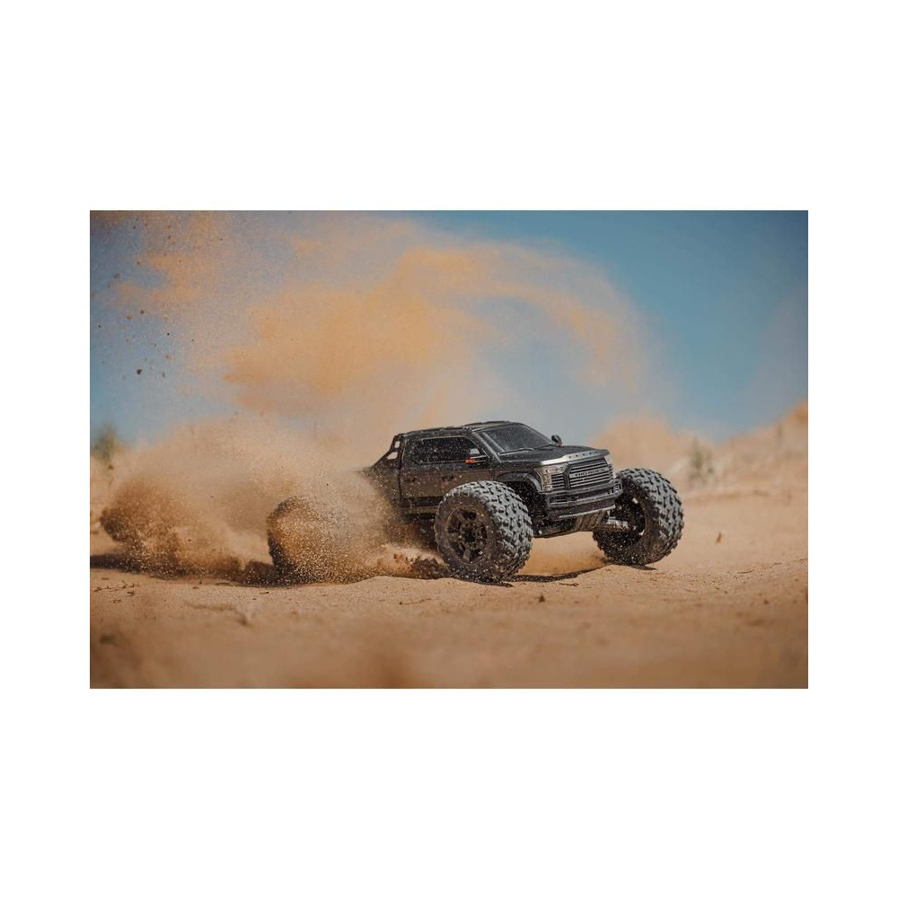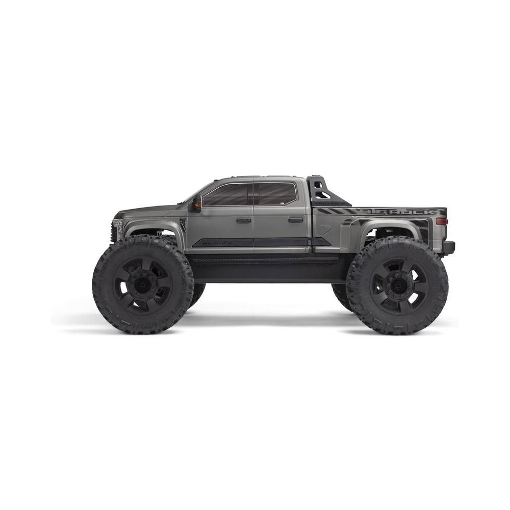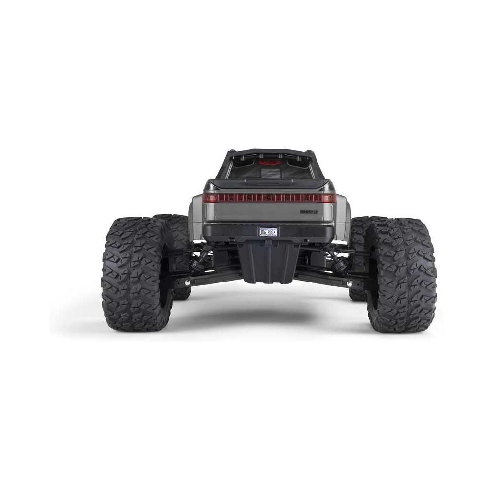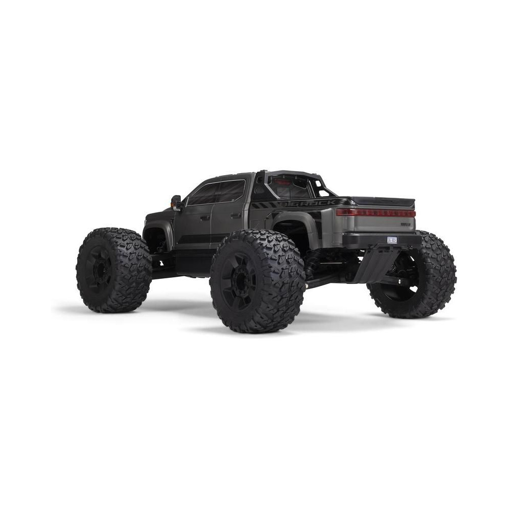 Az 1:7 méretarányú ARRMA® BIG ROCK™ 6S BLX RTR monster truckot kompromisszumok nélküli, gyors és durva vezetésre tervezték. Fekete eloxált alumínium alvázzal rendelkezik, erős kompozit oldalvédőkkel a szennyeződések ellen, középső merevítéssel és spirálrugókkal a maximális tartósság érdekében. A tartós hajtáslánc teljesen fémből készült differenciálművet és sebességváltó fogaskerekeket tartalmaz. Az egész hajtásláncban acél hajtótengelyeket használnak.