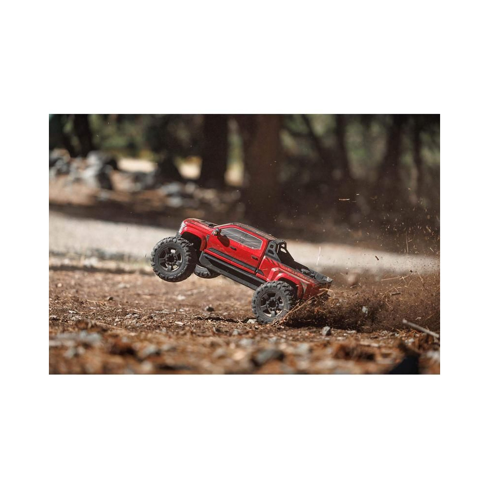 Az ARRMA BIG ROCK 6S BLX RTR összeszerelve, befejezve és indításra készen, a mellékelt Spektrum SLT3™ adóval együtt. Csak a meghajtó akkumulátort és az akkumulátortöltőt kell hozzáadni.