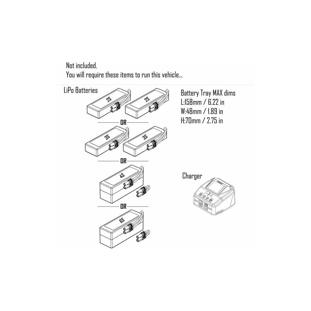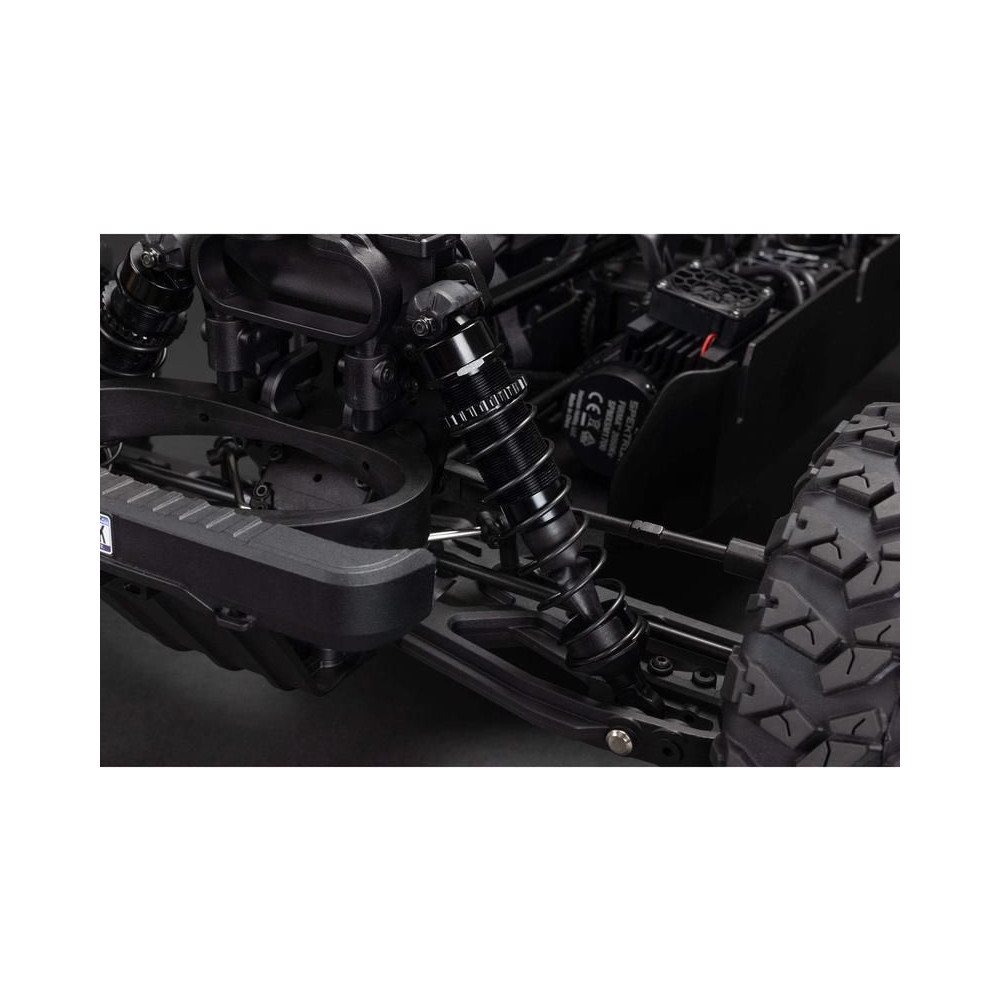 A fekete eloxált 6061-T6 alumínium váz és az állítható olajjal töltött alumínium lengéscsillapítókkal ellátott független felfüggesztés egy rendkívül tartós, bármilyen terepen használható modellt eredményez. Az egyes alkatrészek, mint például a fém hajtáslánc, az acél tengelyek és az új Spektrum S665 digitális szervóvezérlés fém fogaskerekekkel együtt dolgoznak a 6S AC meghajtás teljes potenciáljának kihasználása érdekében.