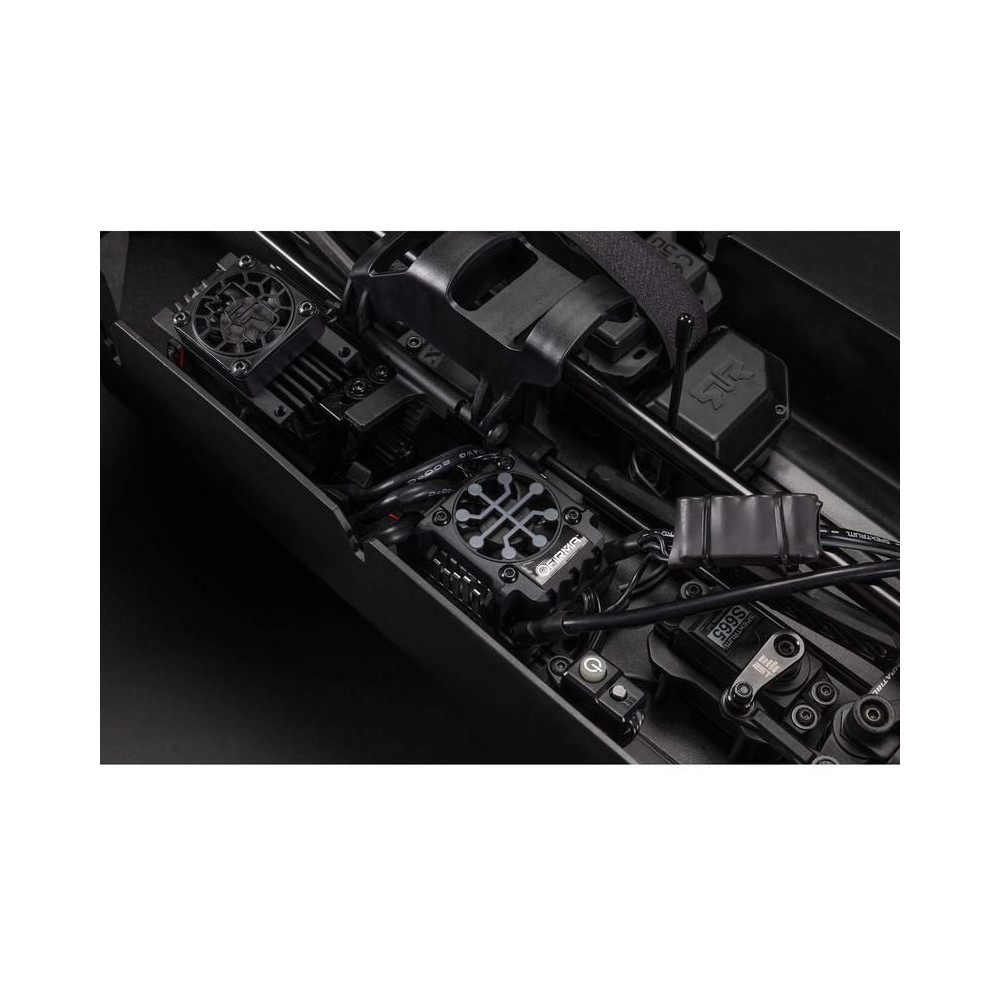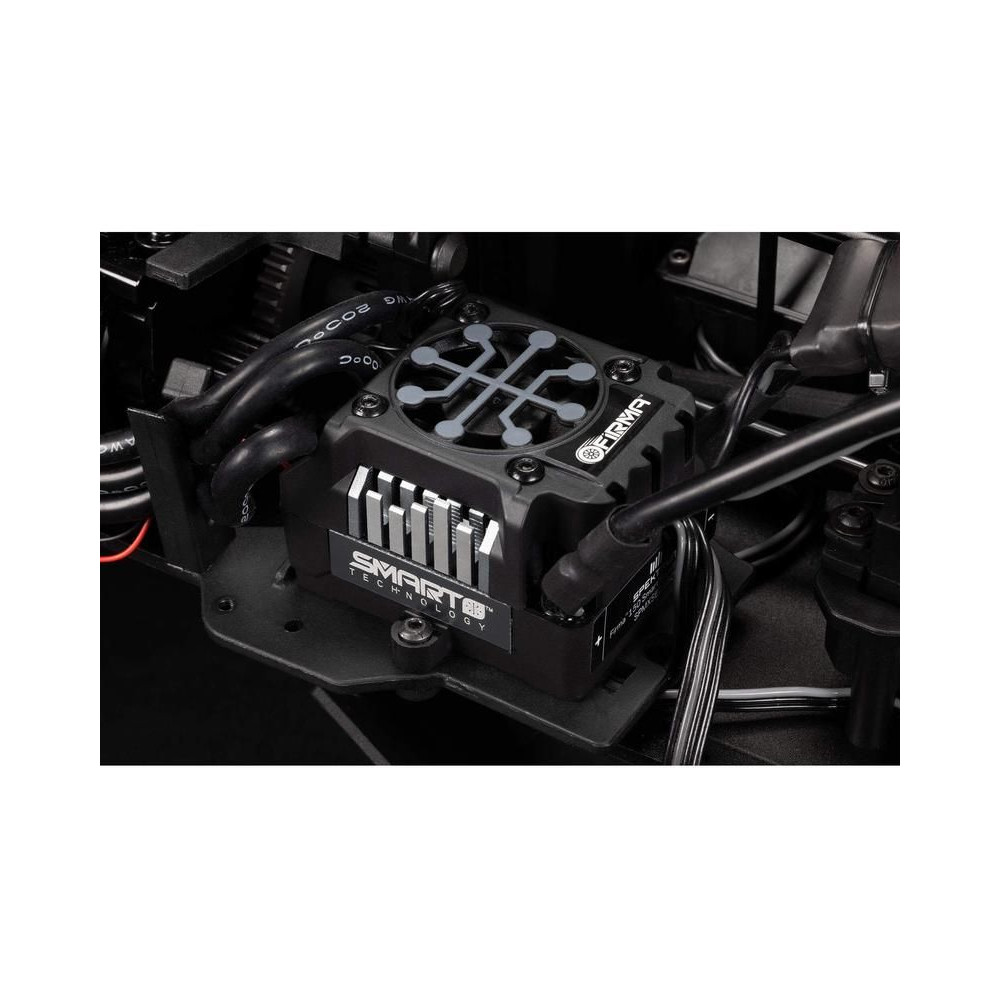 A 6S LiPo akkumulátorok által támogatott RC modell hajtásrendszere egy nagy hatékonyságú Spektrum Firma™ 2050Kv kefe nélküli motort tartalmaz, amely tökéletesen illeszkedik a vízálló* Spektrum Firma 150A Smart V2 vezérlőhöz, IC5 csatlakozókkal. A modellhez egy új vezérlőt használtak, amely nagyobb ütőerőt és jobb menetérzetet biztosít. Kemény, sík felületeken a mellékelt opcionális fogaskerékkel maximális sebességet érhet el.