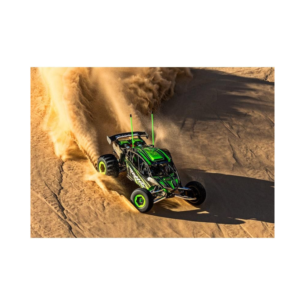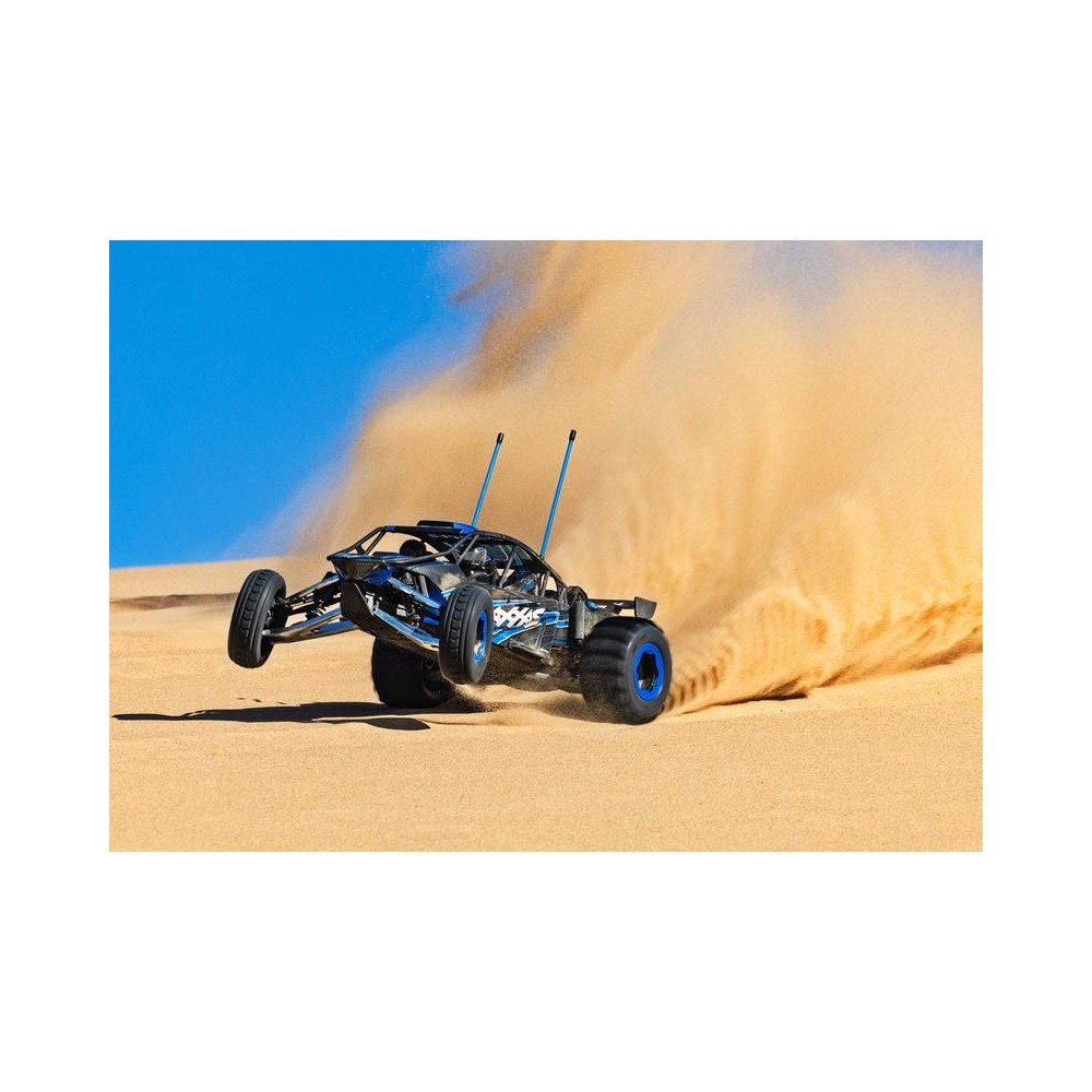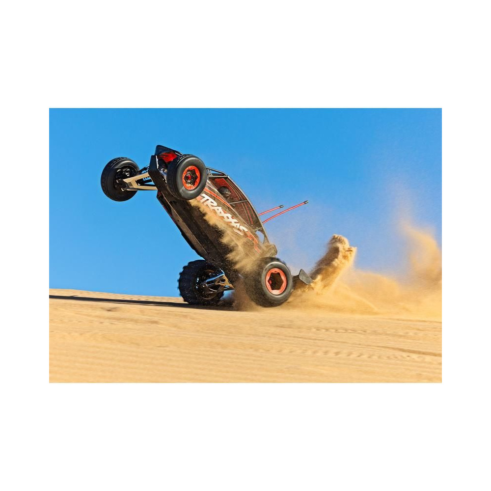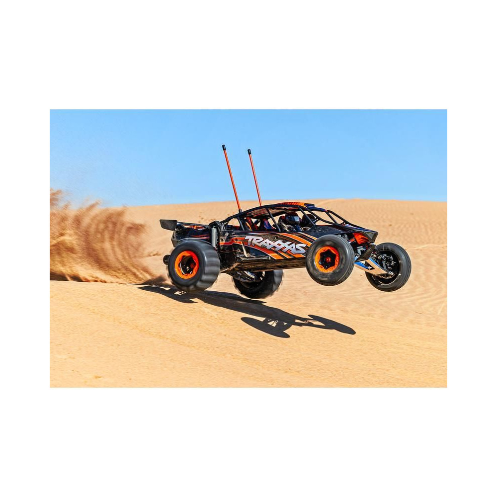 Egy sivatagi sebességváltó különleges autójának távirányítású modellje, amely majdnem ugyanolyan adrenalinélményt nyújt, mintha egy igazi, 1000 lóerős és akár 240 km/h sebességű versenyautóval vezetnél a dűnék között. A Traxxas Funco modellje az X széria óriási, 1:5 méretarányú méretei alapján akár 90 km/h sebességet is elérhet , miközben nyers, realisztikus vezetési tulajdonságokat is megőrz.