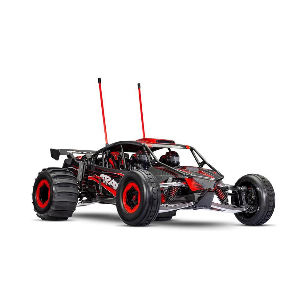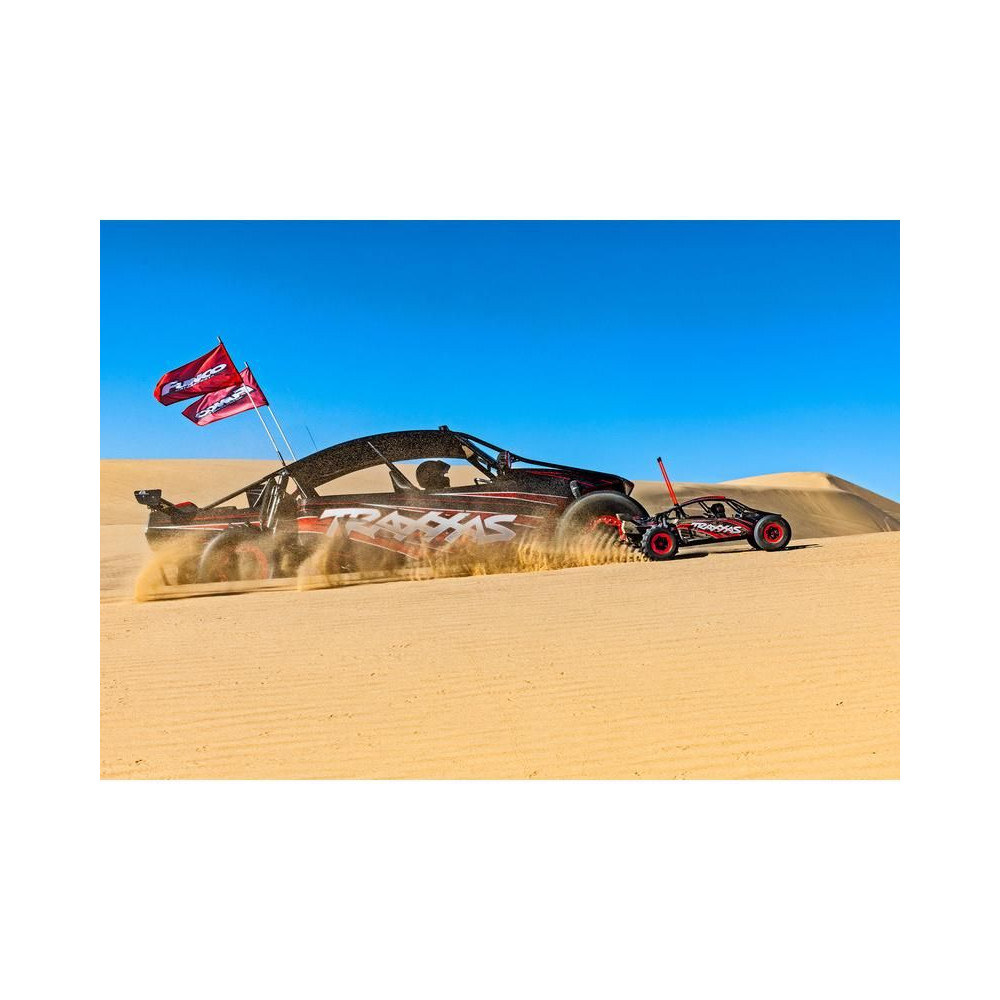 Egy sivatagi sebességváltó különleges autójának távirányítású modellje, amely majdnem ugyanolyan adrenalinélményt nyújt, mintha egy igazi, 1000 lóerős és akár 240 km/h sebességű versenyautóval vezetnél a dűnék között. A Traxxas Funco modellje az X széria óriási, 1:5 méretarányú méretei alapján akár 90 km/h sebességet is elérhet , miközben nyers, realisztikus vezetési tulajdonságokat is megőrz.