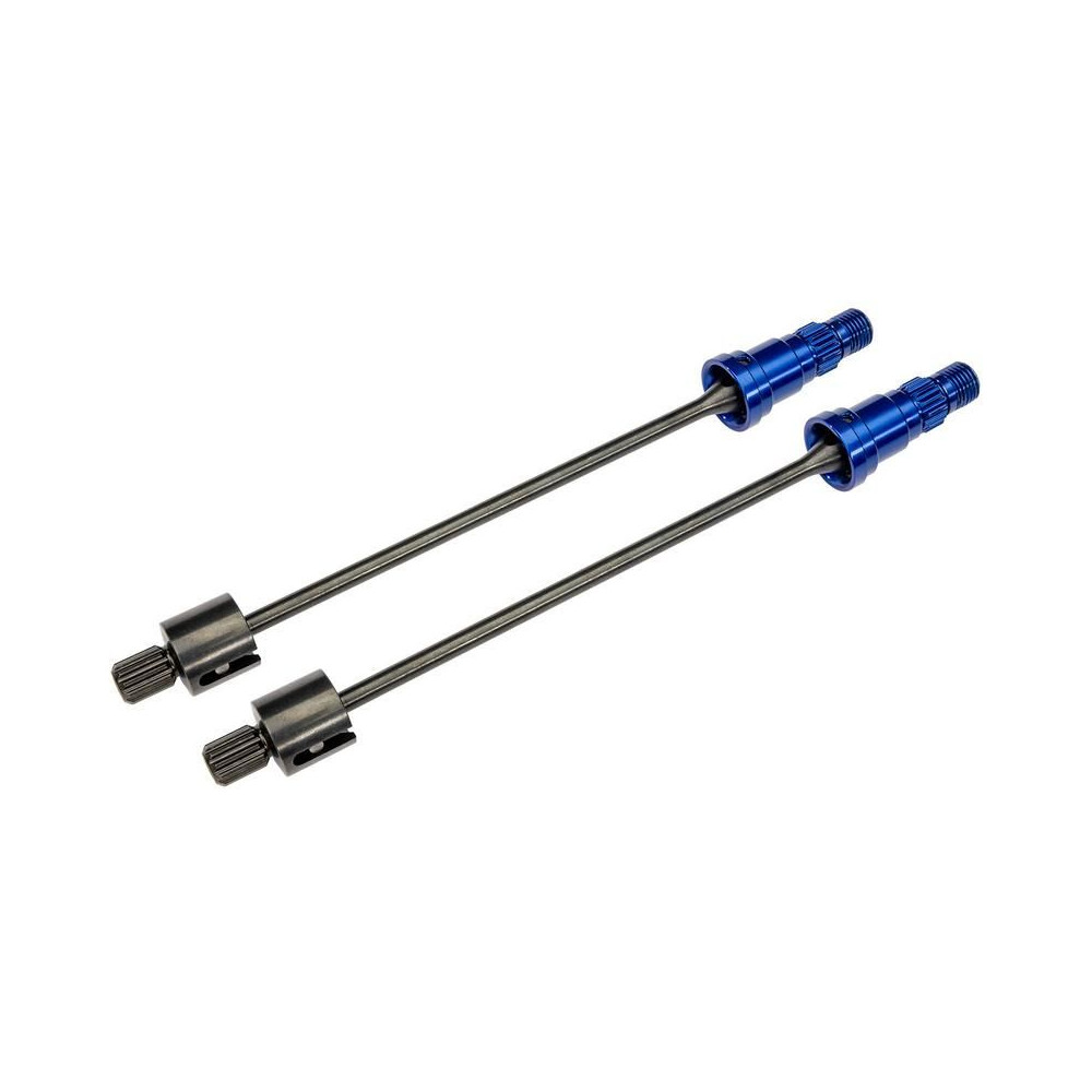 A differenciálműből kilépő, hornyolt kimenő robusztus acél kardántengelyek nagyobbak, mint az X-Maxx modellen, és biztonságosan továbbítják a motor teljes teljesítményét a kerekekhez. A párhuzamos kialakítású illesztéseknek (CV) köszönhetően a tengelyek minden felfüggesztési helyzetben simán futnak.