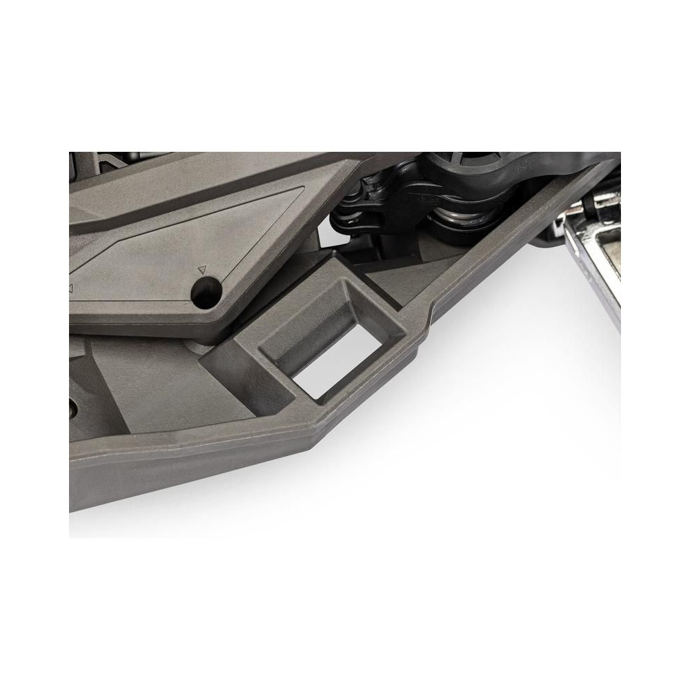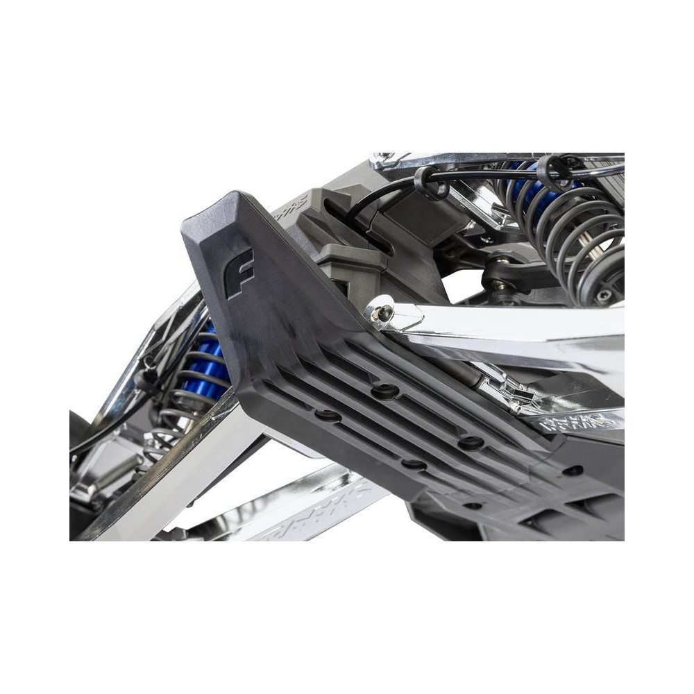 Az alvázba integrált, alacsony profilú első és hátsó csúszkák védik a fontos hajtáslánc-elemeket a sérülésektől. Ugyanakkor a lemezek kiegészítik az alváz letisztult vonalait, amelyek nem akadnak el az akadályokon.