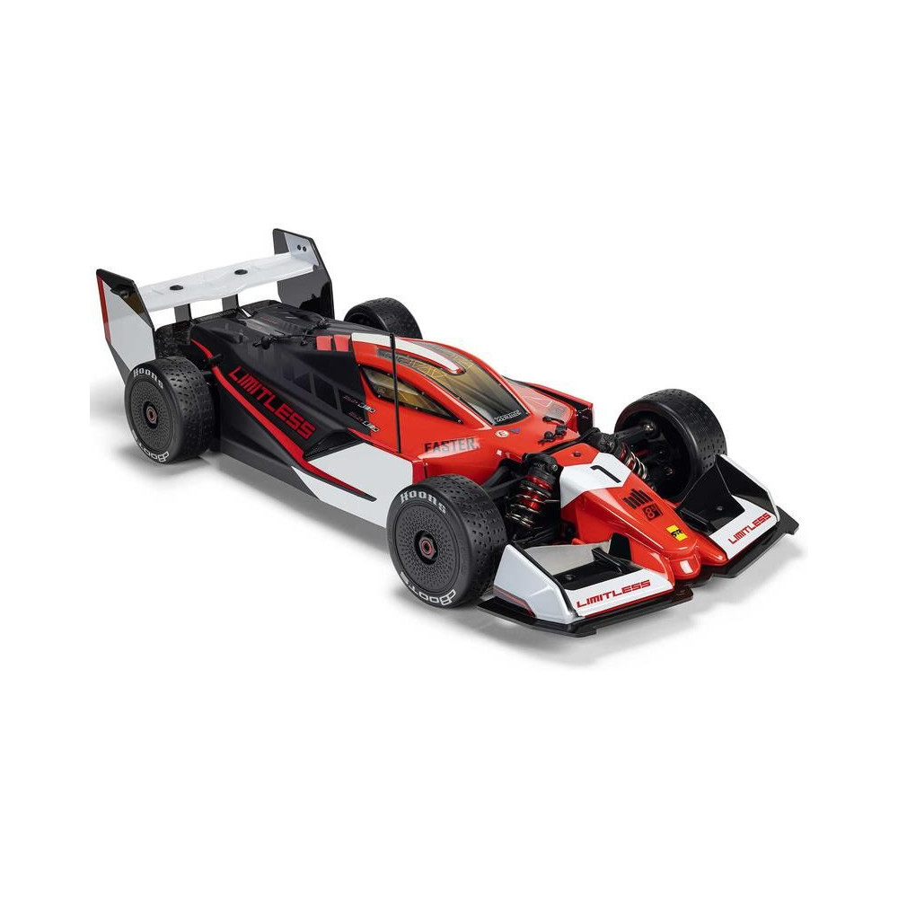 A modell alváza egy 3 mm-es eloxált alumínium alvázlemezből és egy központi merevítésből áll a szerkezet merevítése érdekében. A teljesítményt minden kerékhez teljes egészében fémből készült EXB tengelydifferenciálművek és egy központi differenciálmű osztja el. A független felfüggesztés nagy térfogatú olajos lengéscsillapítókat tartalmaz, amelyek a lengéscsillapító tornyokhoz hasonlóan eloxált alumíniumból készültek. A rugó-előfeszítés könnyen állítható egy anya segítségével. A dBoots Hoons gumiabroncsok kiváló tapadást biztosítanak, akár aszfalton, alacsony füvön vagy sík murván vezetsz. A karosszéria speciális formájú az alacsony légellenállás érdekében. Az első spoiler és a nagy hátsó diffúzor együttesen optimális leszorítóerőt hoznak létre a kiváló vezetési tulajdonságok érdekében. Mindez segít abban, hogy a teljesítmény és a sebesség új definícióját tapasztald meg.