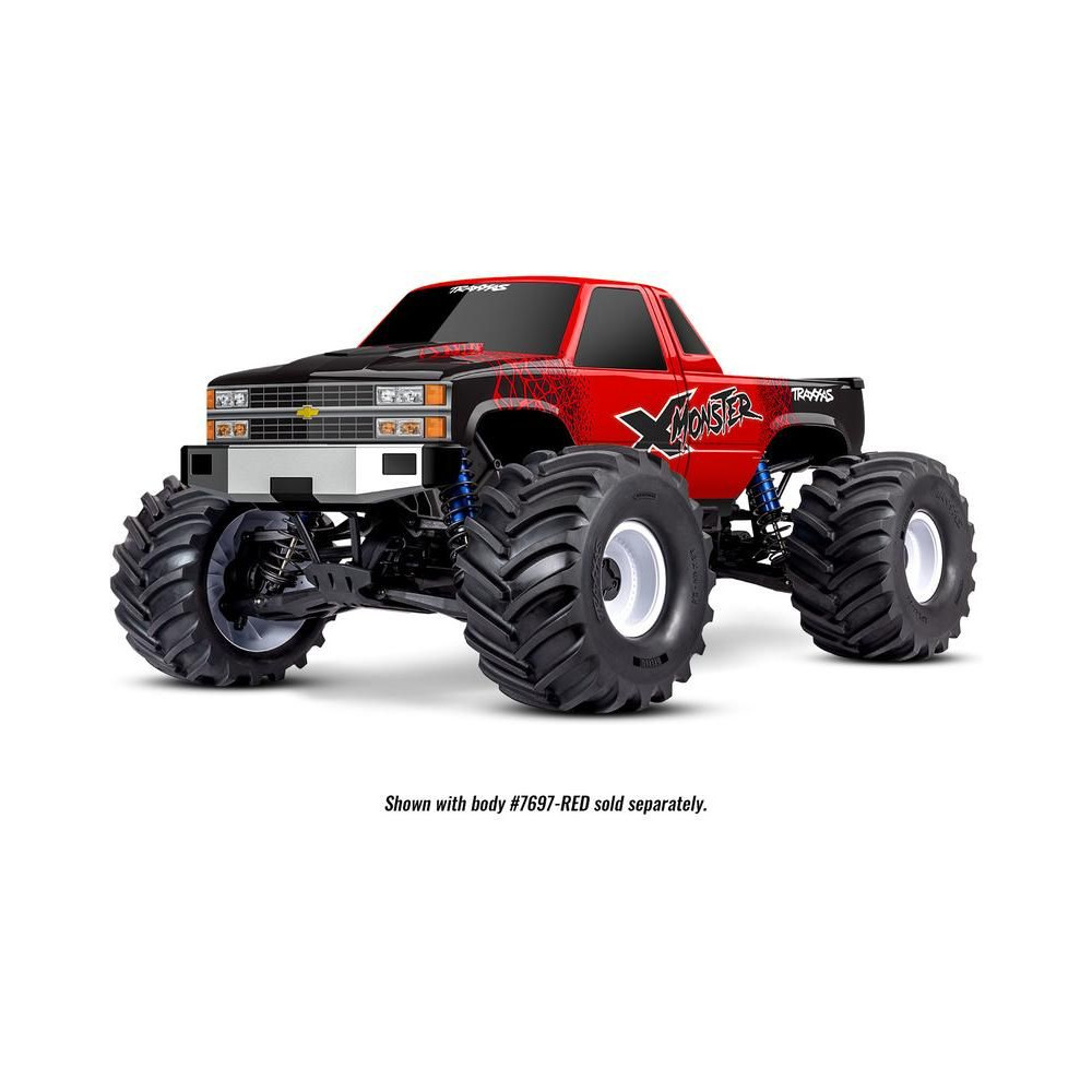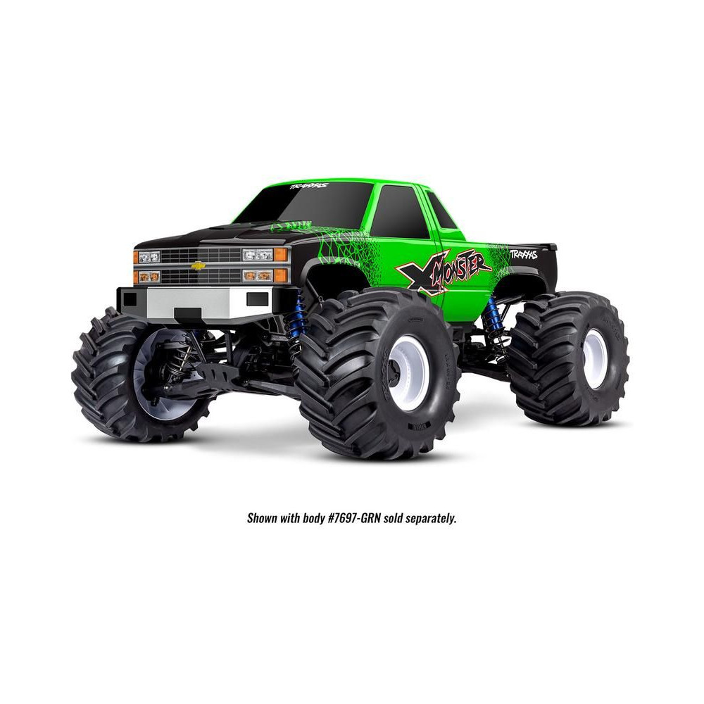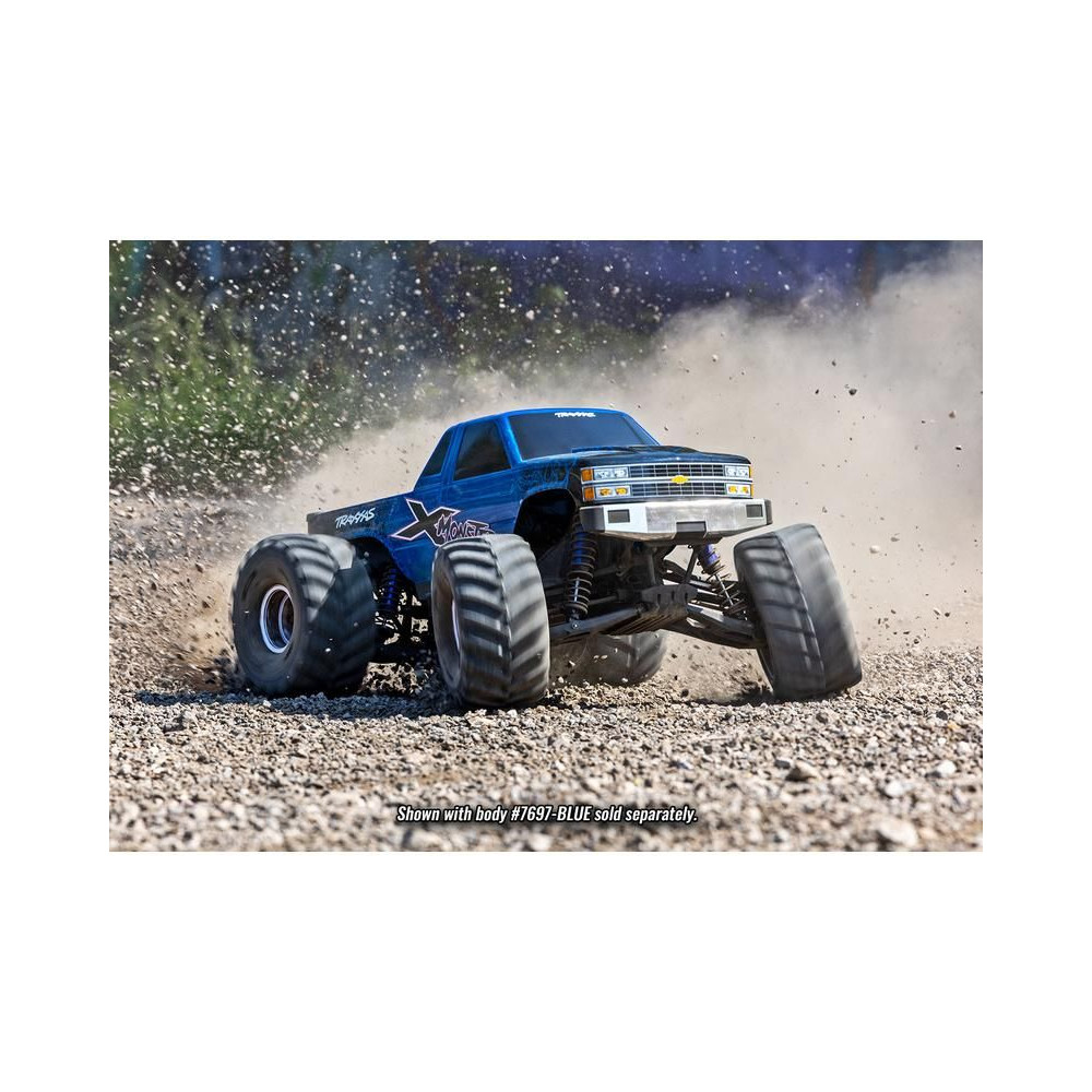 A Traxxas X-Monster MT-t a kompromisszumok nélküli, maximális vezetési élményre tervezték. Magas hasmagassággal, széles nyomtávval és csúcskategóriás alkatrészekkel rendelkezik a extrém teljesítmény érdekében. Az alváz nejlonból készült, moduláris felépítésű és integrált lengéscsillapító-tartókkal, amelyek nagy ütésállóságot biztosítanak. A lengéscsillapítók alumíniumból készültek, állíthatóak és olajjal töltöttek. A teljes egészében fémből készült hajtáslánc egy "Cush Drive" lengéscsillapítóból, első, középső és hátsó differenciálművekből, alumínium középtengelyből, acél féltengelyekből és két csapágyas kerékagyakból áll.