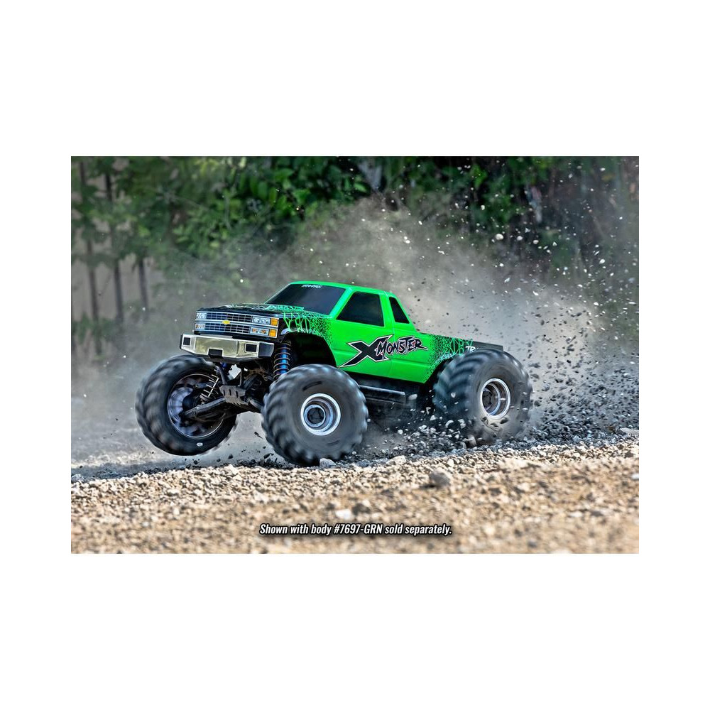 Brutálisan erős és a legnagyobb RC autó modell, a Traxxas X-Monster (X-Maxx MT), kompletten összeszerelt 1:5 arányú alvázként , amelyet csak egy választott karosszériával kell felszerelni (a karosszéria külön kapható). Az X-Monster alváz egy különálló alváz az X-Maxx modelltől, amely erősebb lengőkarokat, tartósabb differenciálmű-kimeneti patkókat és fém fogaskerekes szervót is tartalmaz. Ez a karosszéria nélküli RC modell a csúcskategóriás Traxxas 8S elektronikával van felszerelve. A modellhez külön megvásárolható karosszériák is kaphatók - például X-Monster Chevrolet GMT400 CK, vagy X-Monster Ford F-150 / Bigfoot. Akár kavicsos, egyenetlen terepen vagy magas fűben közlekedsz, az X-Monster 8S MT méretének és extrém erejének köszönhetően könnyedén kezel mindent, és akár 80 km/h sebességet is elérhet.