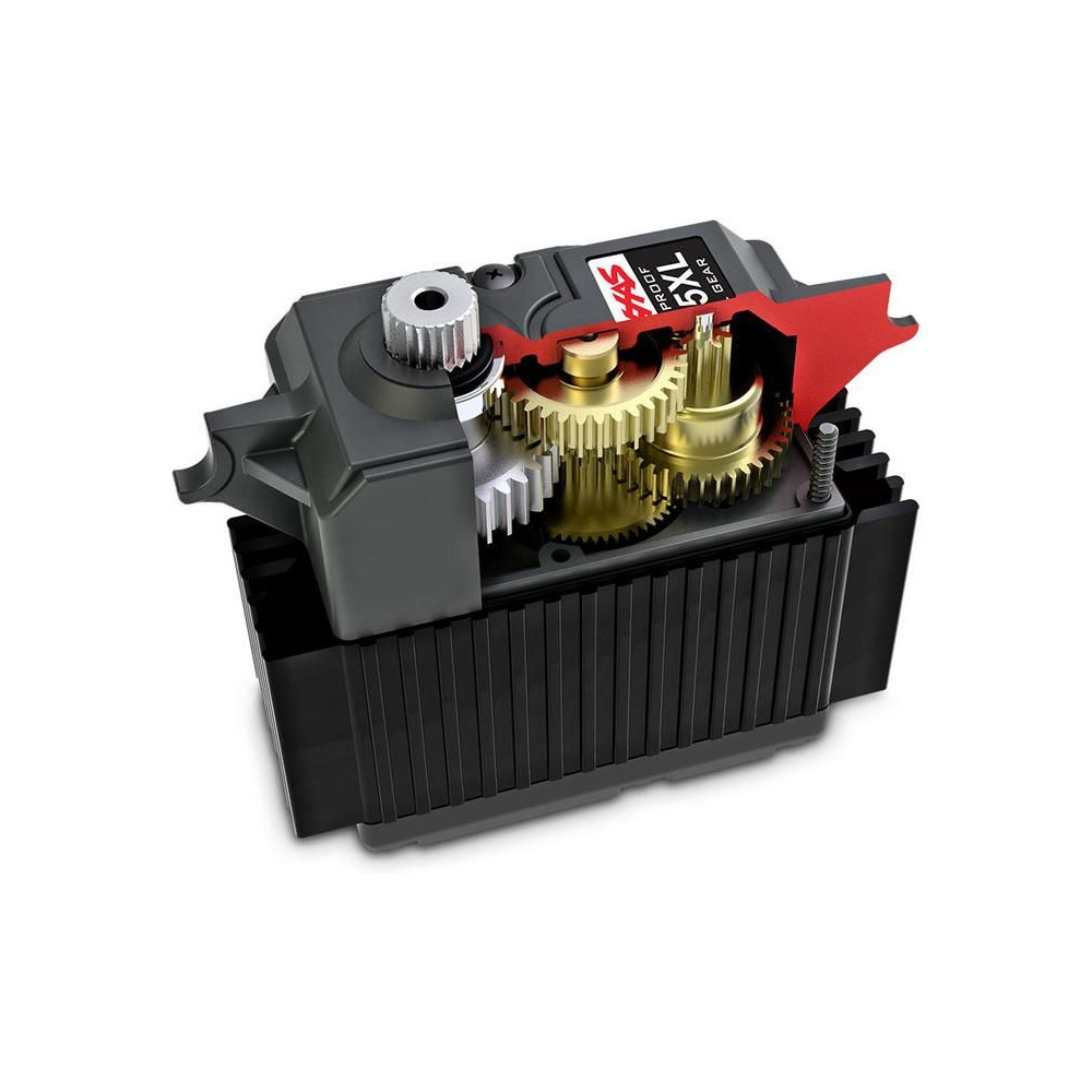 A vezérlést egy robusztus, digitális Traxxas szervo - TRA2085X - valósítja meg. A maximális méretű szervo nyomatéka 32 kg·cm, sebessége pedig 0,16 s/60°. Fém fogaskerekek. Dupla golyóscsapágy a mart tengelyen a precíz működés érdekében. Vízálló* konstrukció. A szervo hatékony hűtését a központi hűtő biztosítja.