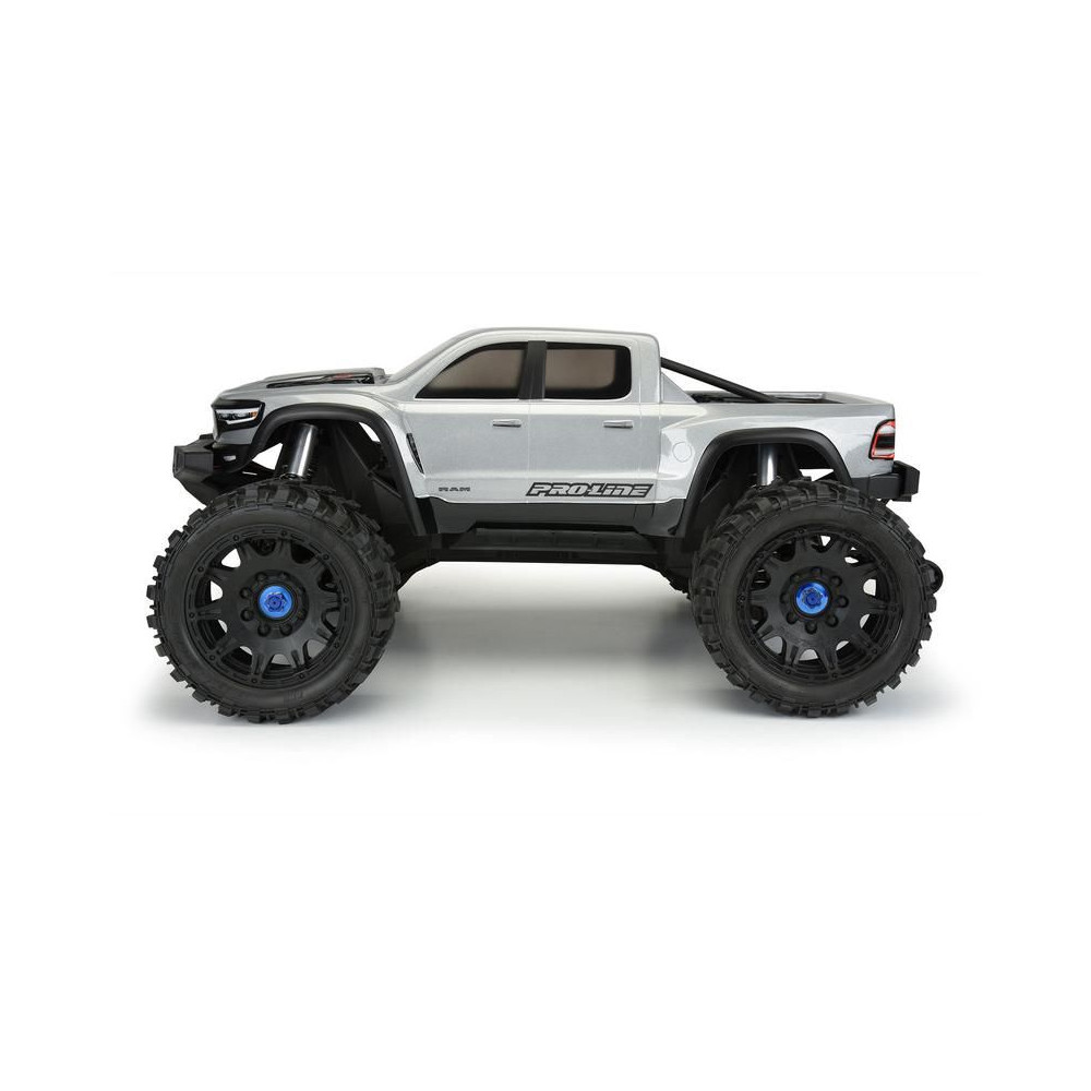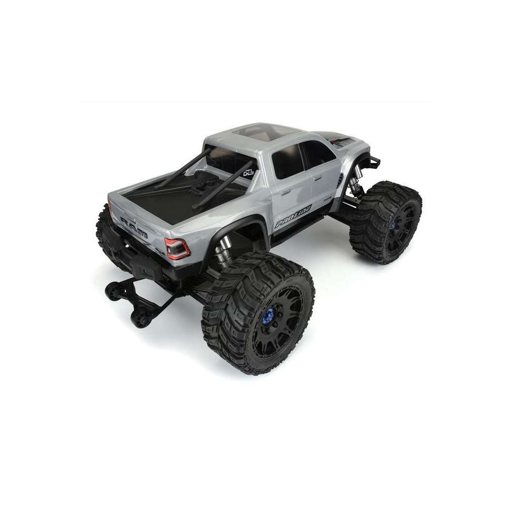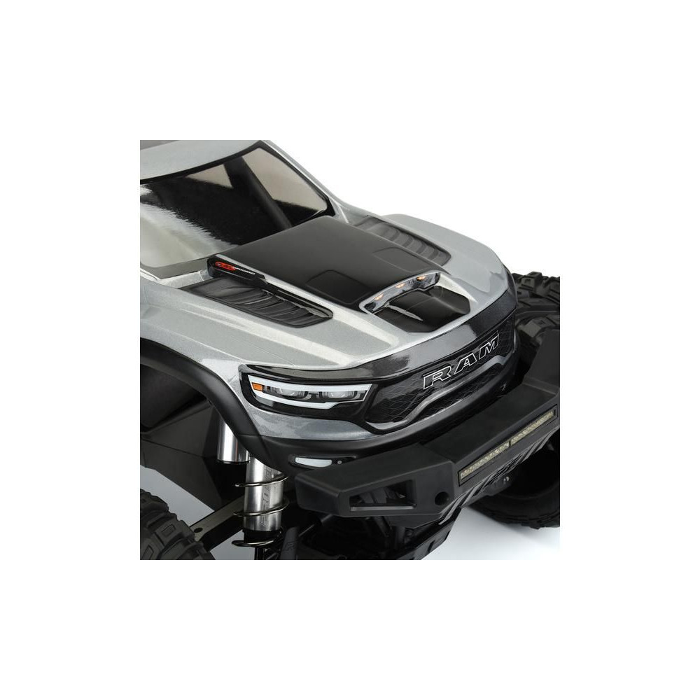 A Pro-Line kínálja a végső licencelt Ram 1500 karosszériát, amely kifejezetten az X-MAXX®-hez készült - a 2021-es Ram 1500-hoz! A nemrég megjelent 2021-es Ram 1500 a valaha gyártott legerősebb sorozatgyártású teherautó, több mint 700 lóerővel, így még a mi karosszériánk is extrém Off-Road megjelenéssel rendelkezik, amely kiemeli a Monster Truckodat a többi közül. A Pro-Line az összes agresszív méretarányos részletet beépítette a karosszériába és a jelvénybe, hogy egy rendkívül részletes makett legyen, és egy készre vágott karosszériával érkezik, így mindent gyorsabban befejezhetsz. Ez a karosszéria teljesen átalakítja az X-MAXX®-edet egy még őrültebb Bash Machine-né, és lehetővé teszi, hogy saját színezésű grafikákat adj hozzá! Adja meg X-MAXX®-jának a megérdemelt robusztus Off-Road megjelenést az új Pro-Line 2021 Ram 1500 karosszériával!