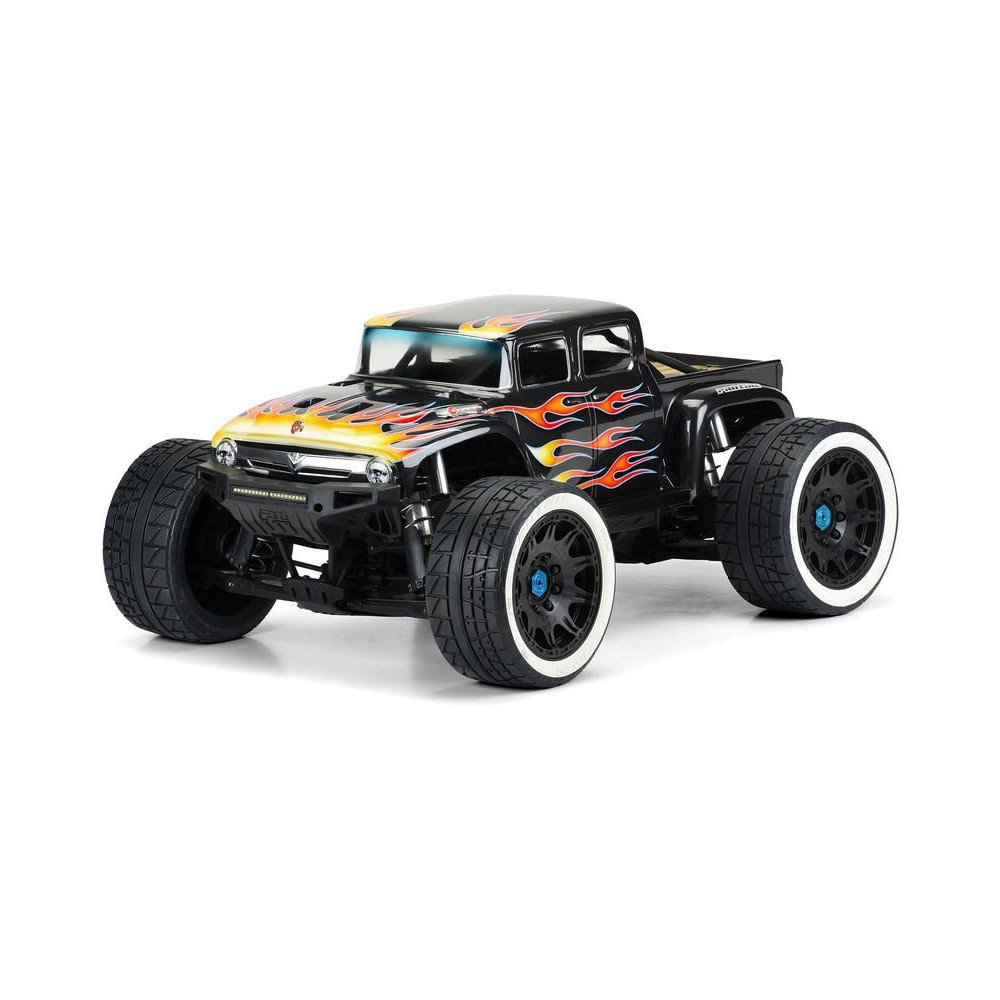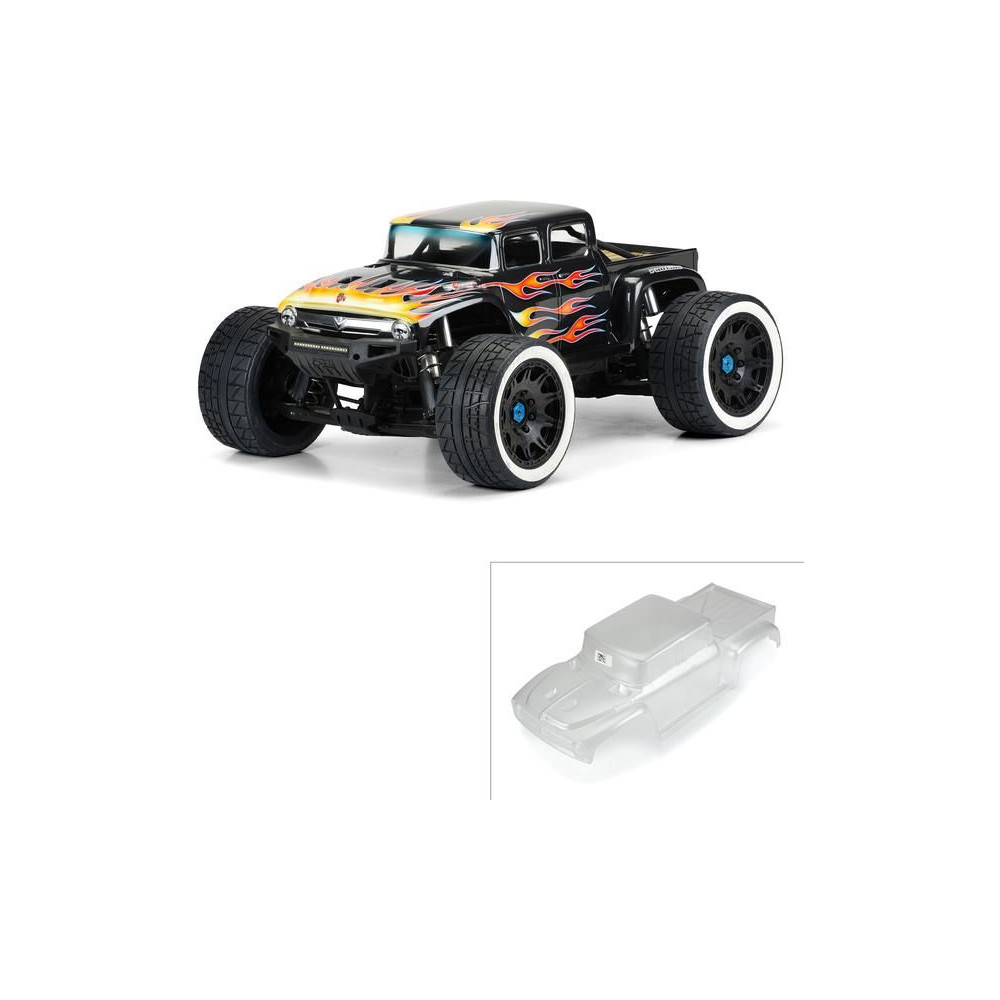 Pro-Line 1:6 méretarányú, átlátszó karosszéria, 1956-os Ford F-100, tökéletesen illeszkedik az X-Maxx RC autó alvázára. Az egy darabból álló karosszéria teljesen átalakítja autója megjelenését, valamint meghosszabbított hot-rod stílusú kabinnal rendelkezik. Részletes matricákkal és ablakmaszkokkal kapható.