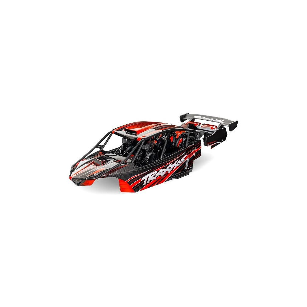 Traxxas karosszéria Funco piros, festett karosszéria felhelyezett matricákkal, beleértve a rögzítőrendszer első és hátsó reteszeit, beleértve a ... belső keret és belső tér.