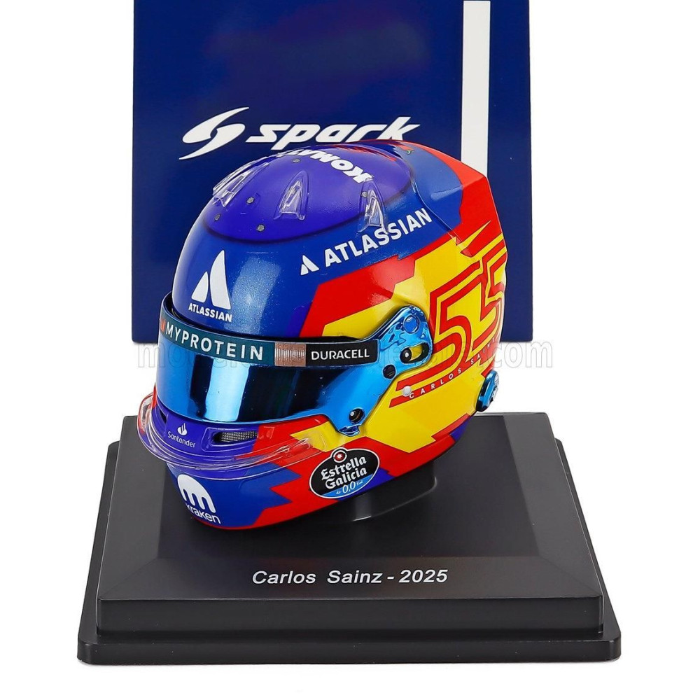 SPARK MODELL BELL BASIC BASIC CASCO BASIC F1 CARLOS SAINZ CSAPAT ATLASSIAN WILLIAMS RACING N 55 2025-ÖS SZEZON - KÉK SÁRGA PIROS