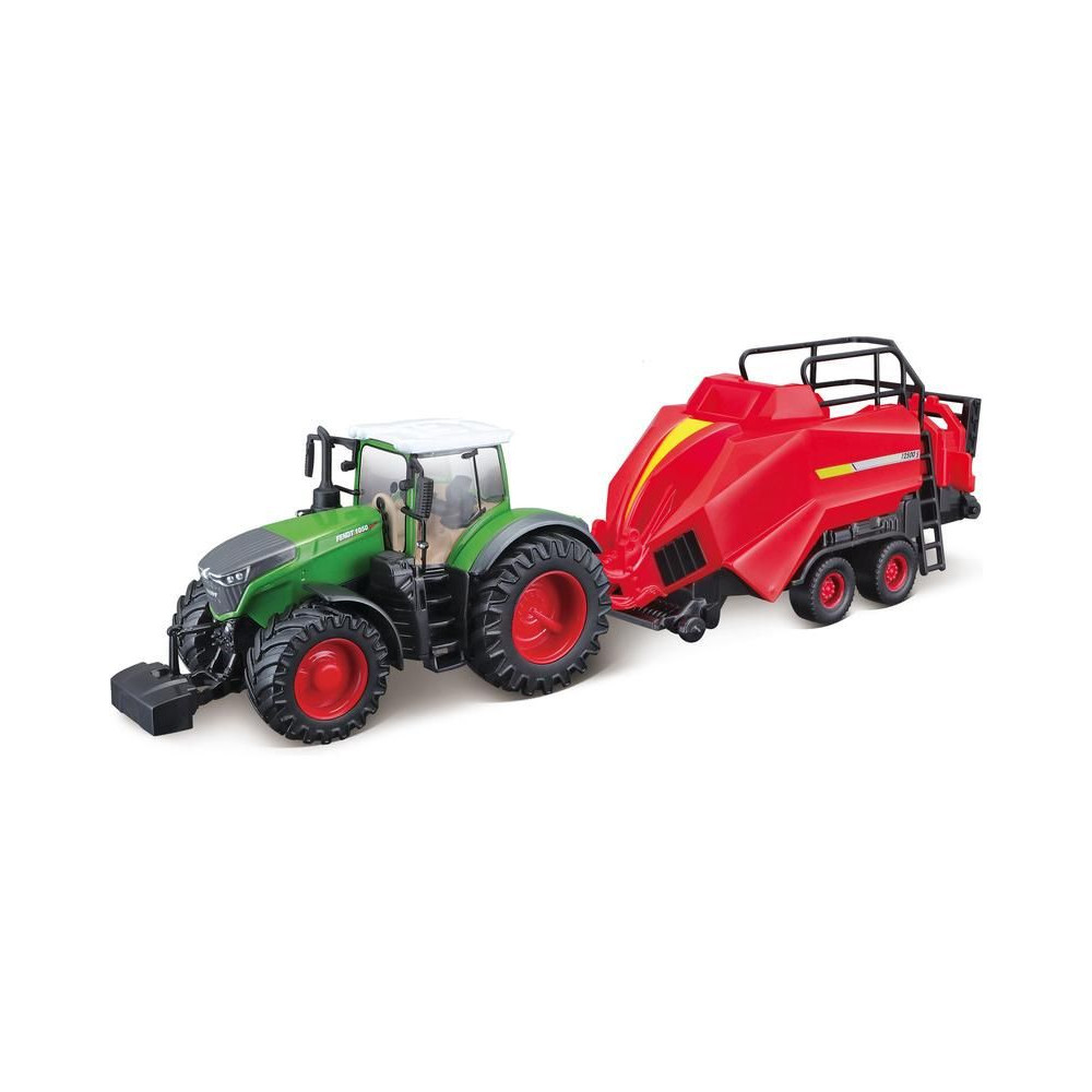 A Bburago 18-31663 - Fendt 1050 Vario traktor bálázóval című modell fém és műanyag alkatrészekből készült. A modell hátsó vonóhoroggal rendelkezik a mellékvágány rögzítéséhez, és részletesen kidolgozott.