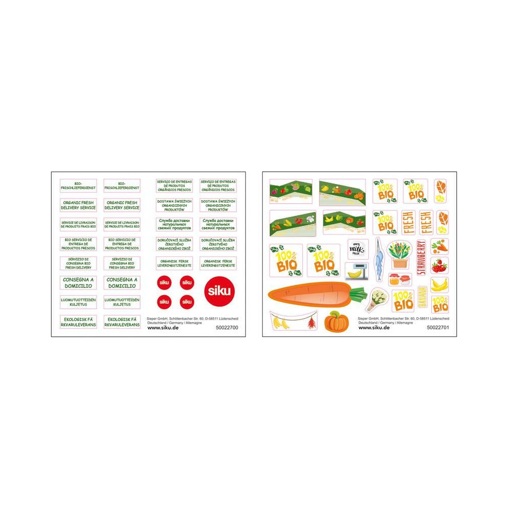 SIKU Super - biotermékek szállítására szolgáló autó matricákkal, 1:50