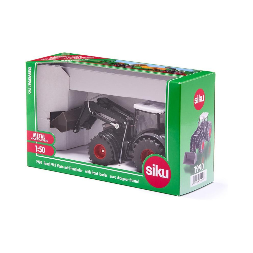Fém Fendt 942-es traktor homlokrakodóval 1:50 méretarányban. A rakodó emelőkarral és dönthető vödörrel rendelkezik. A fülke leválasztható a modellről. Játékra és gyűjtésre alkalmas. Minőségi kivitelezés fémből és műanyagból. Az elülső konzolnak köszönhetően más Siku 1:50-es méretű tartozékok is használhatók.
