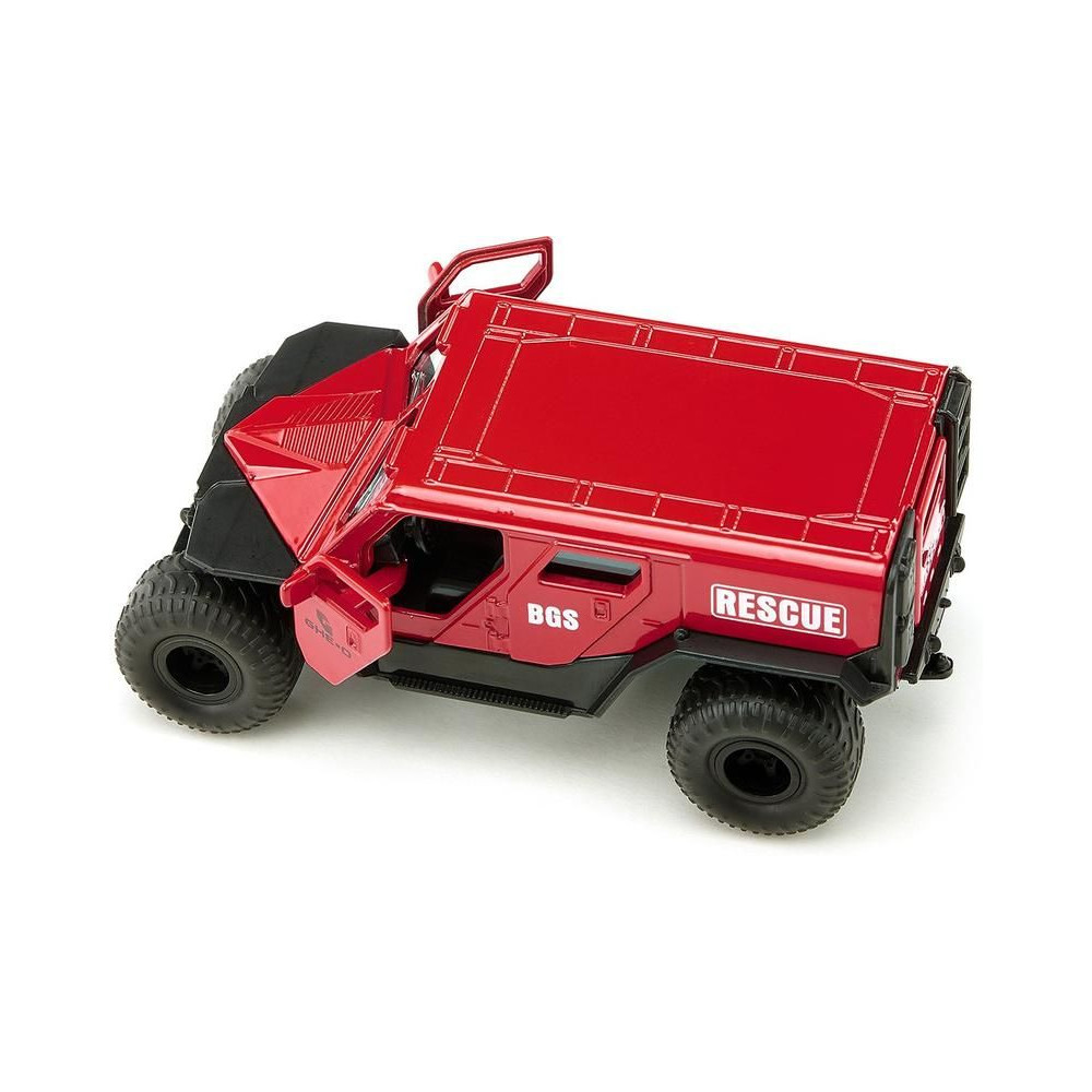 1:50 méretarányú fém modell egy terepjáró mentőjárműről. Nyitható oldalsó és hátsó ajtókkal rendelkezik. Funkcionális felfüggesztés és cserélhető kerekek. Játékra és gyűjtésre egyaránt alkalmas. Minőségi kivitelezés fémből és műanyagból.