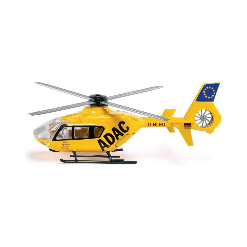 ADAC mentőhelikopter fém modellje 1:55 méretarányban. A modell tartalmaz egy forgó főrotoros légcsavart és egy nyitható hátsó ajtót egy hordágybábuval. Játékra és gyűjtésre egyaránt alkalmas. Minőségi kivitelezés fémből és műanyagból.