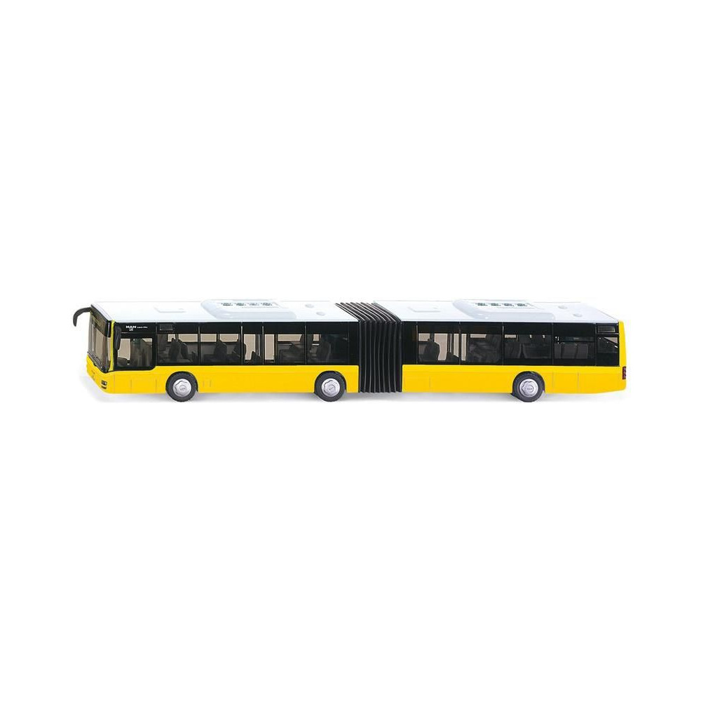 A MAN Lions City csuklós autóbusz fémmodellje 1:50 méretarányban a Siku-tól. A modell gumiabroncsokkal (a hátsó tengelyeken dupla), jobb oldalon nyitható ajtókkal, nyitható motorburkolattal és sötétített ablakokkal rendelkezik. Játékra és gyűjtésre egyaránt alkalmas. Minőségi kivitelezés fémből és műanyagból.