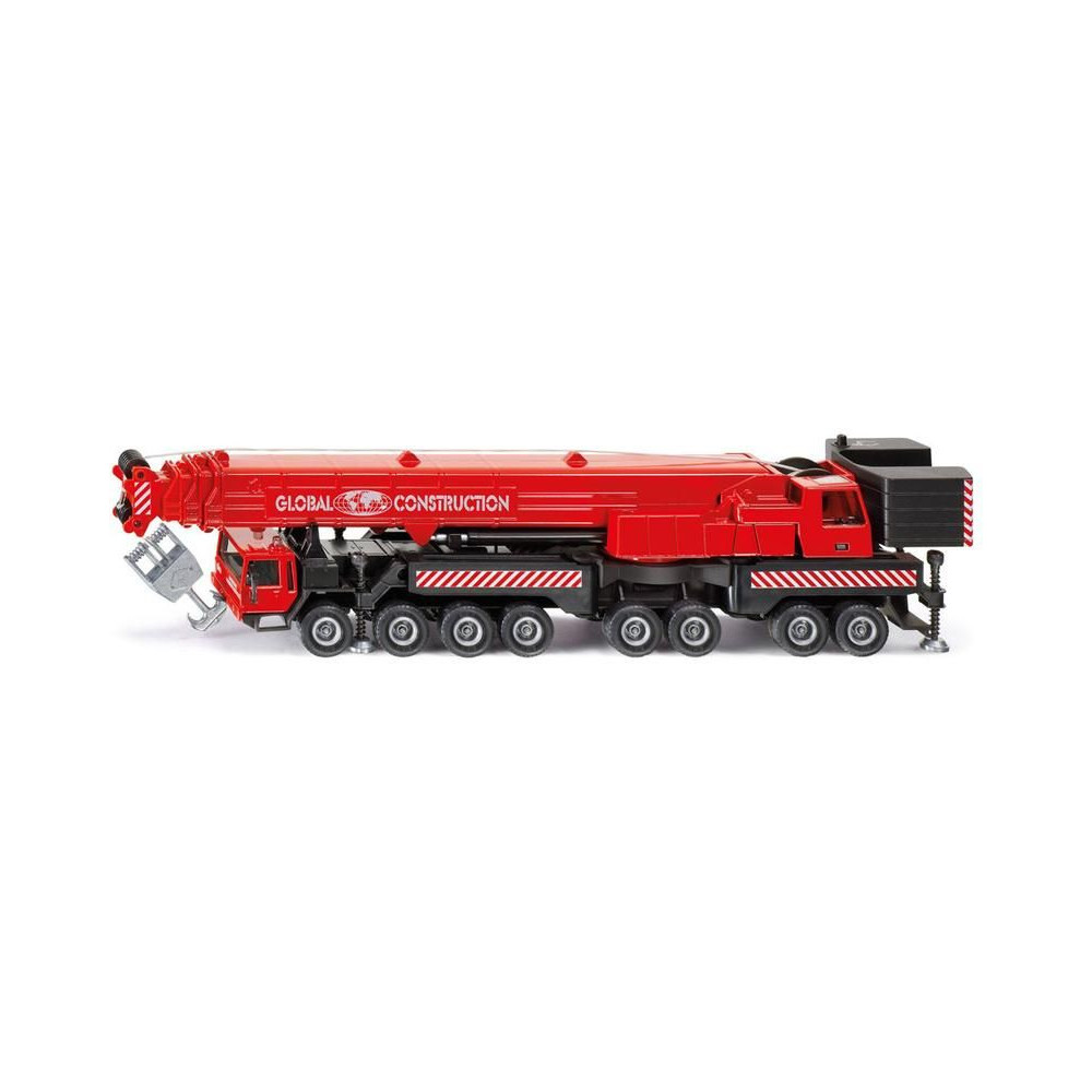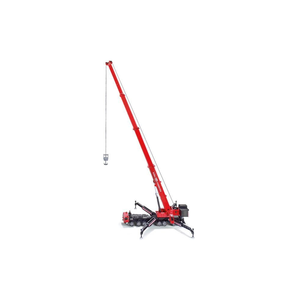 Siku fém teleszkópos daru modellje 1:55 méretarányban. A nyolctengelyes, gumibevonatú kerekekkel ellátott modell csavarokkal ellátott, forgatható teleszkópos támasztékkal, 97 cm hosszú emelő teleszkópos karral, hidraulikus dugattyúbábukkal és kézi csörlővel a horoghoz. Játékra és gyűjtésre egyaránt alkalmas. Minőségi kivitelezés fémből és műanyagból.