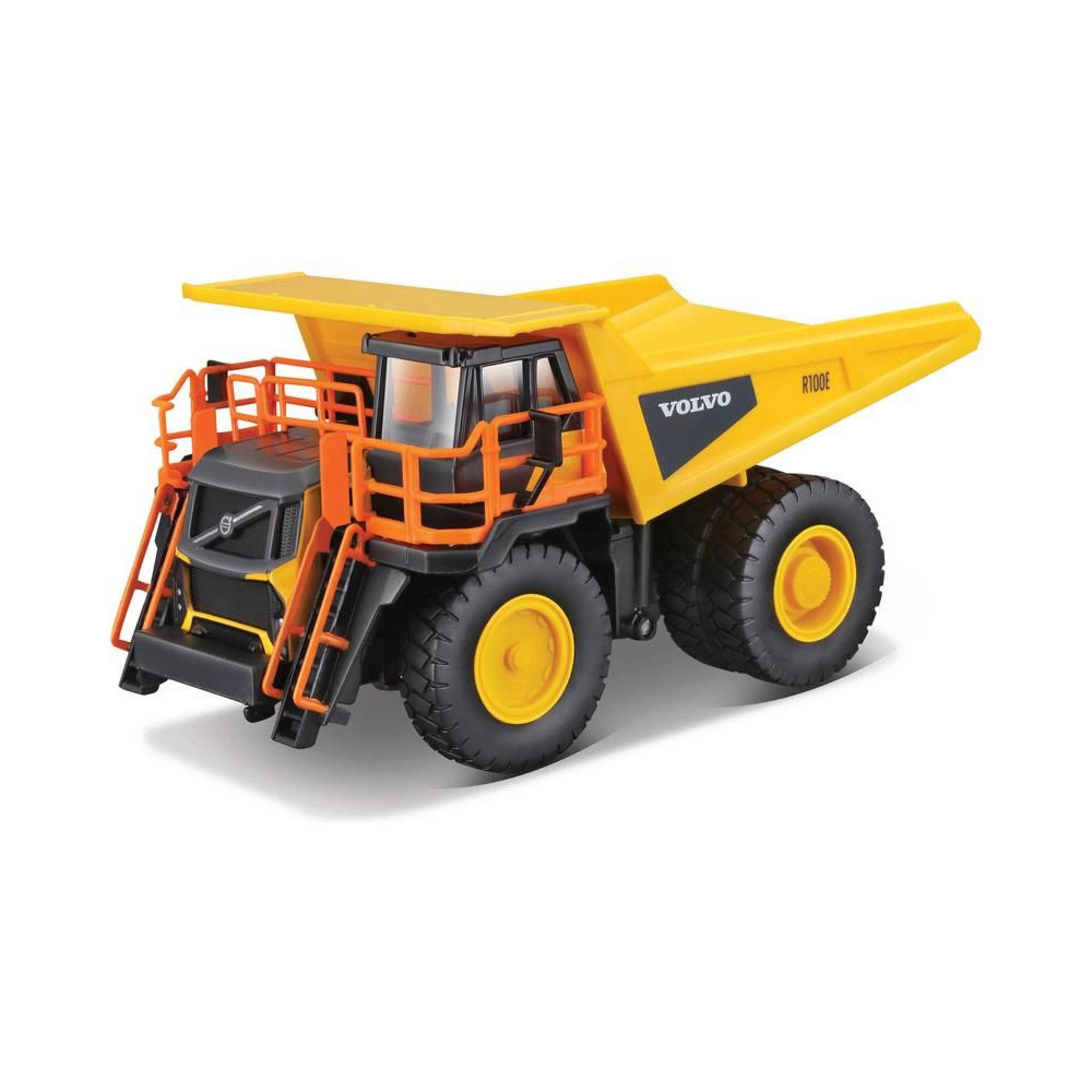 Volvo R100E dömper modell 1:60 méretarányban. Fém és műanyag alkatrészekből készült. Részletes feldolgozás. A jellegzetes sárga színű modell körülbelül 15 cm magas.