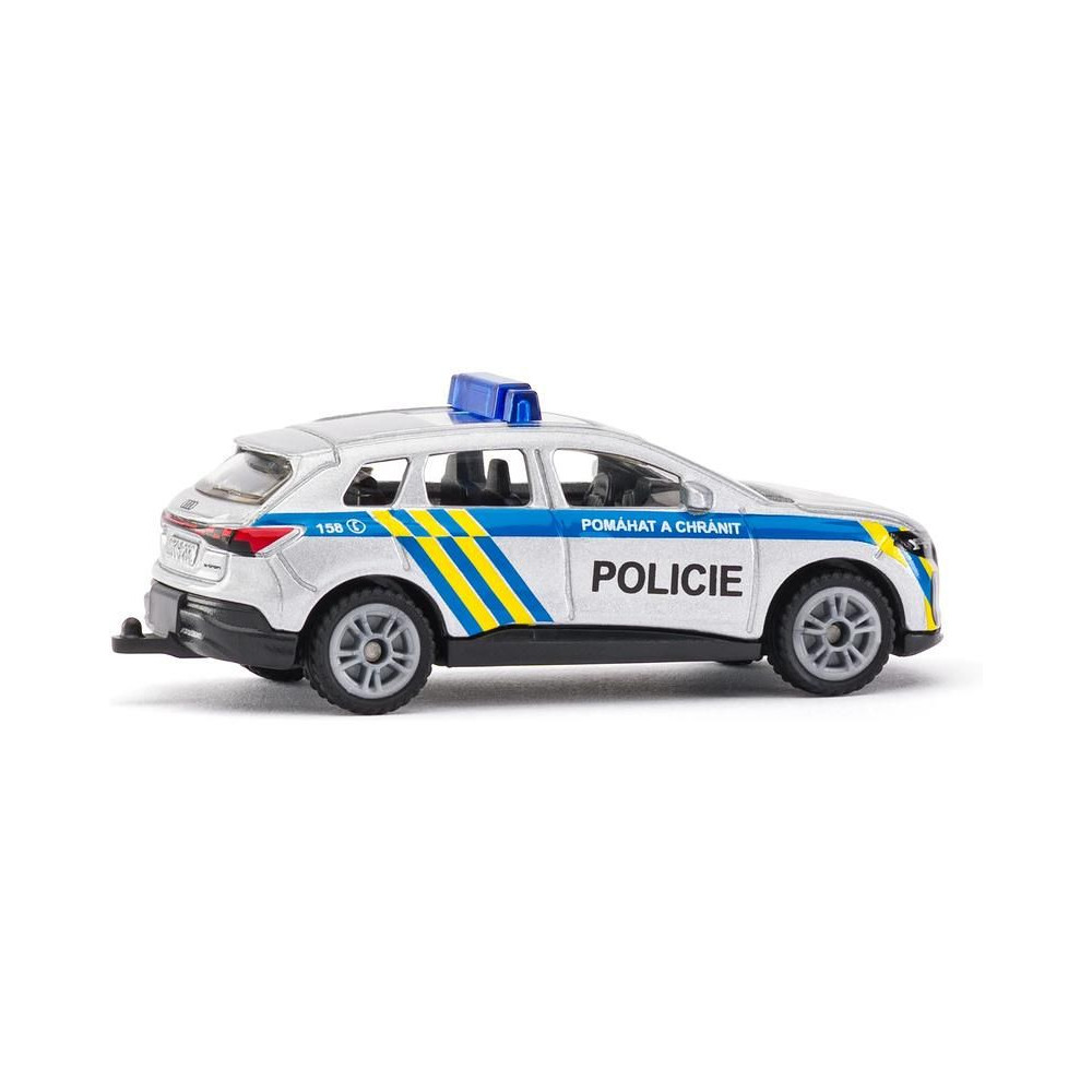 Audi Q4 e-tron rendőrautó fémmodellje cseh feliratokkal, 1:50 méretarányban. A modell átlátszó ablakokkal, gumiabroncsokkal és vonóhoroggal rendelkezik. Egy kompakt SUV makettje részletes rendőrségi dizájnnal. Játékra és gyűjtögetésre is alkalmas. Minőségi fém- és műanyagmegmunkálás. Bliszterbe csomagolva.