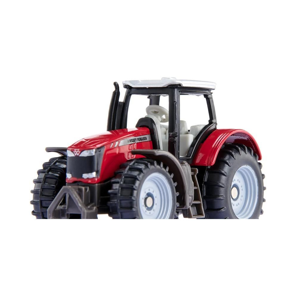 Massey Ferguson traktor fémmodellje 1:50 méretarányban. A traktor gumiabroncsokkal, vonószerkezettel, levehető tetővel és első súllyal van felszerelve, így sokoldalú játék. Alkalmas játékra és gyűjtögetésre. Minőségi fém- és műanyag kidolgozás. Bliszteres csomagolásban. Ez a jármű kötelező darab minden kisgazdálkodó számára.