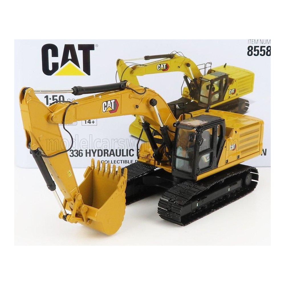 DM MODELS CATERPILLAR CAT336 ESCAVATORE CINGOLATO - TRAKTOR HIDRAULIKUS KOTRÓGÉP KAPARÓ - KÖVETKEZŐ GENERÁCIÓ - SÁRGA FEKETE 1/5