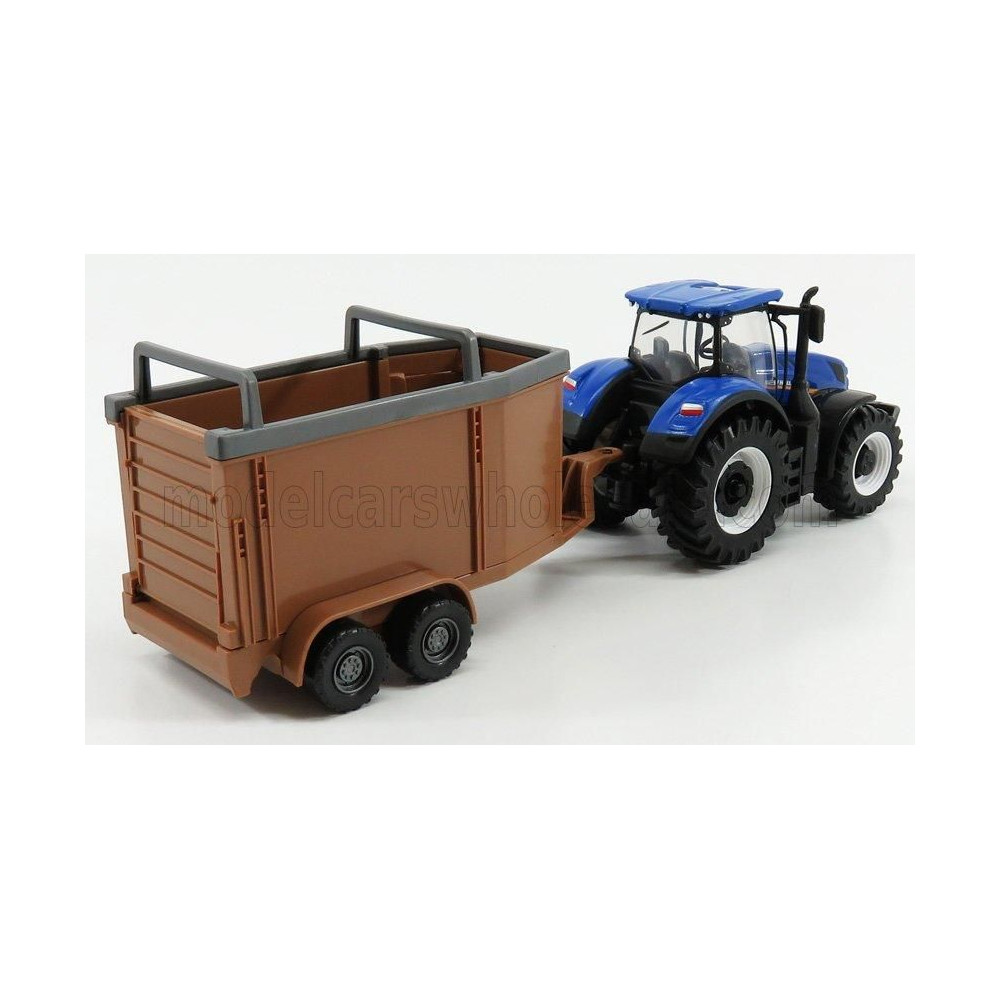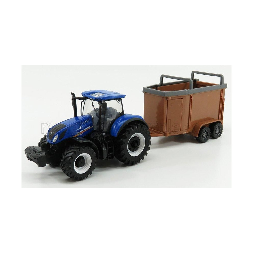 BURAGO NEW HOLLAND T7.315 TRAKTOR + ÁLLATSZÁLLÍTÓ - KÉKBARNA 1/50