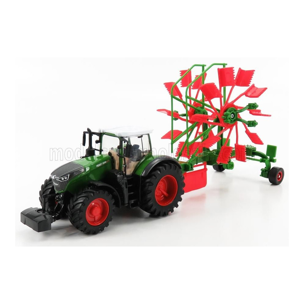 BURAGO FENDT VARIO 1050 TRAKTOR WHIRL GEREBLYEZŐ PÓTKOCSIVAL 2016 - ZÖLD SZÜRKE PIROS 1/50