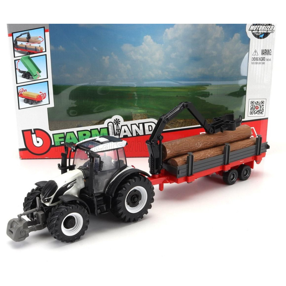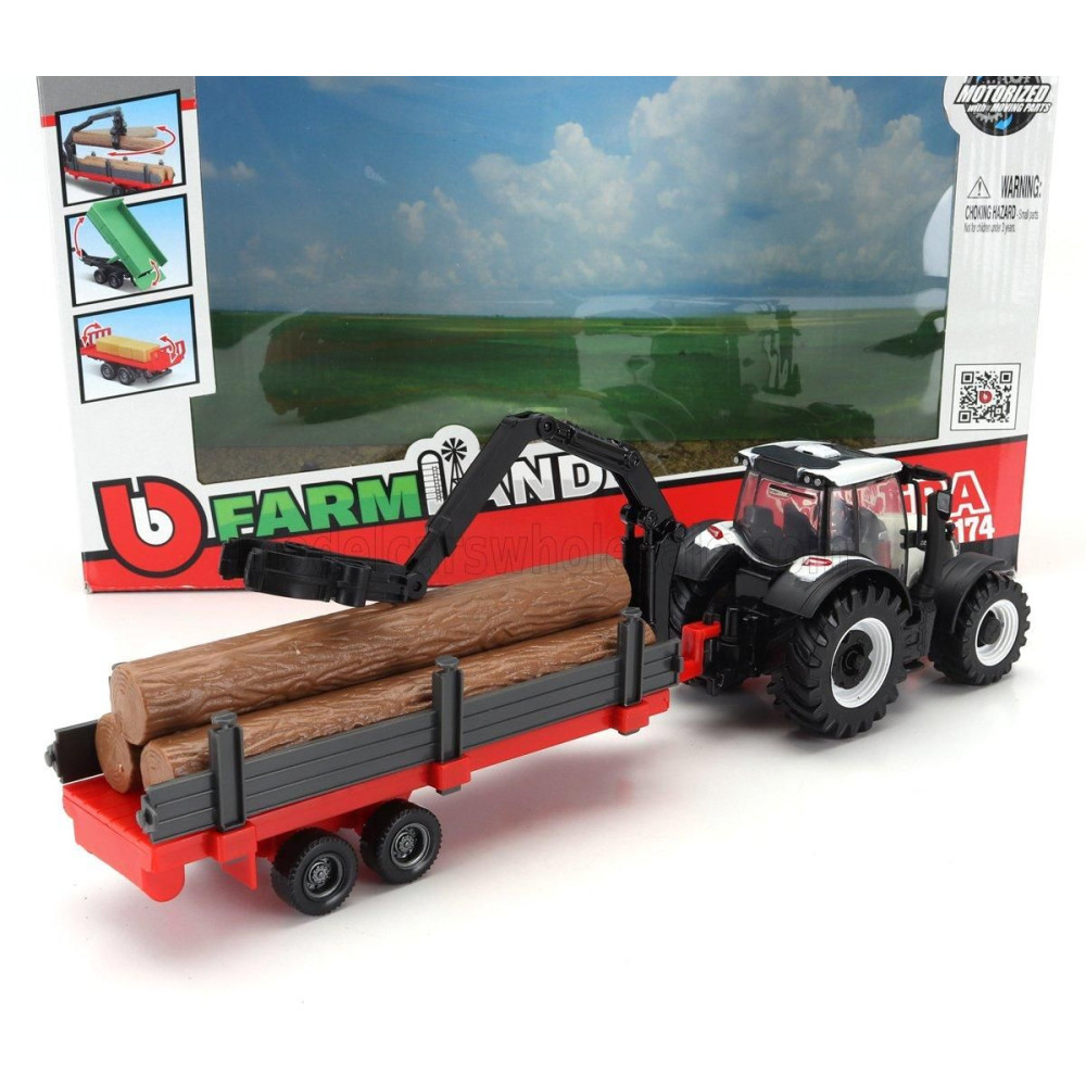BURAGO VALTRA N174 TRAKTOR 3X PÓTKOCSIVAL 2017 - FEHÉR FEKETE ZÖLD PIROS 1/50