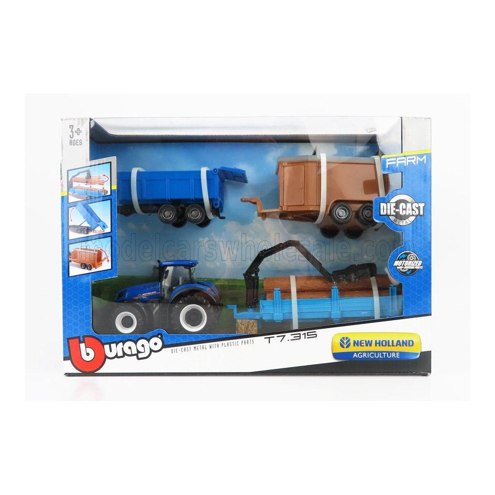 BURAGO NEW HOLLAND T7.315 TRAKTOR 3 PÓTKOCSIVAL 2018 - KÉK 1/50